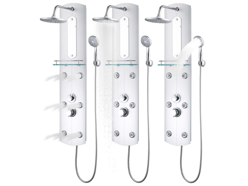 Telo sprchového panela je vyrobené z plastu, ktorý je ľahký a jednoducho sa premiestňuje. Má tri režimy: dažďová sprcha, masážny sprej a ručná sprcha, ktoré sa dajú jednoducho zvoliť. Bol navrhnutý s malým zrkadlom na sprchovom paneli. K dispozícii je aj sklenená polica, ktorá vám umožní uložiť si kozmetiku. Silikónové trysky sú odolné voči usadzovaniu vodného kameňa. Ponorte sa do skutočne relaxačného sprchového zážitku a vychutnajte si moderný štýl tohoto krásne navrhnutého sprchového panelového systému! Montáž je jednoduchá.