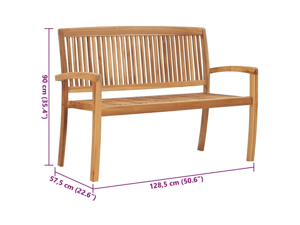 vidaXL Stohovateľná záhradná lavička s podložkou 128,5 cm tíkový masív
