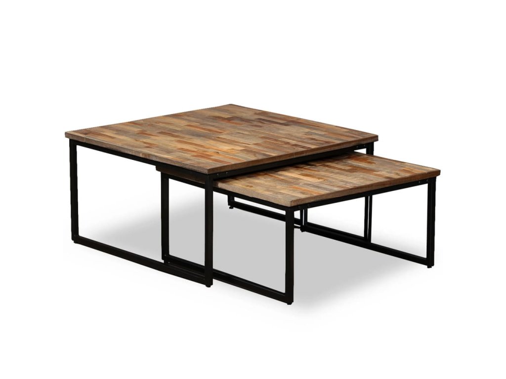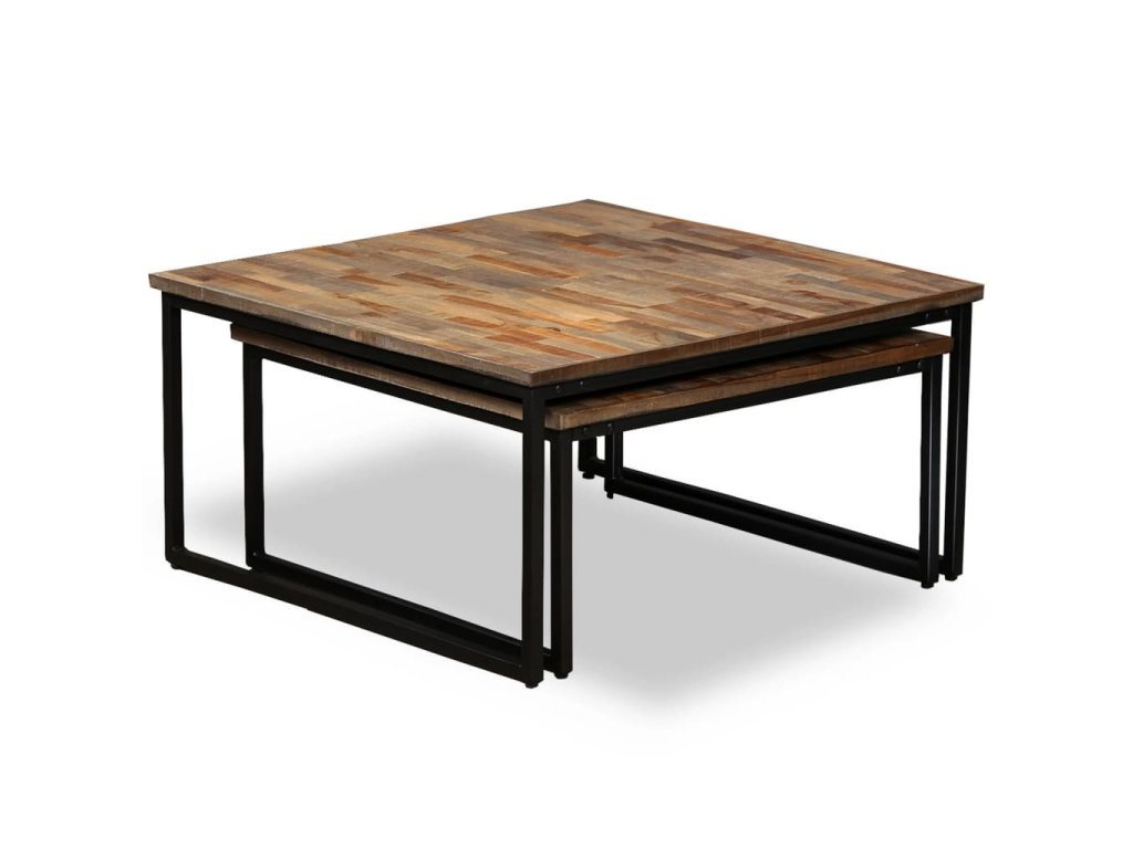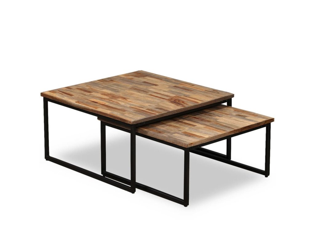 Súprava stohovateľných stolíkov je vyrobená z recyklovaného teakového dreva, čo znamená, že každý kus nábytku je jedinečný a mierne odlišný od ďalšieho kusu. Recyklované teakové drevo je masívne, stabilné, odolné a krásne. Vďaka pevným oceľovým nohám, ktoré im dodávajú veľkolepý priemyselný štýl, sú odolné a trvácne.
