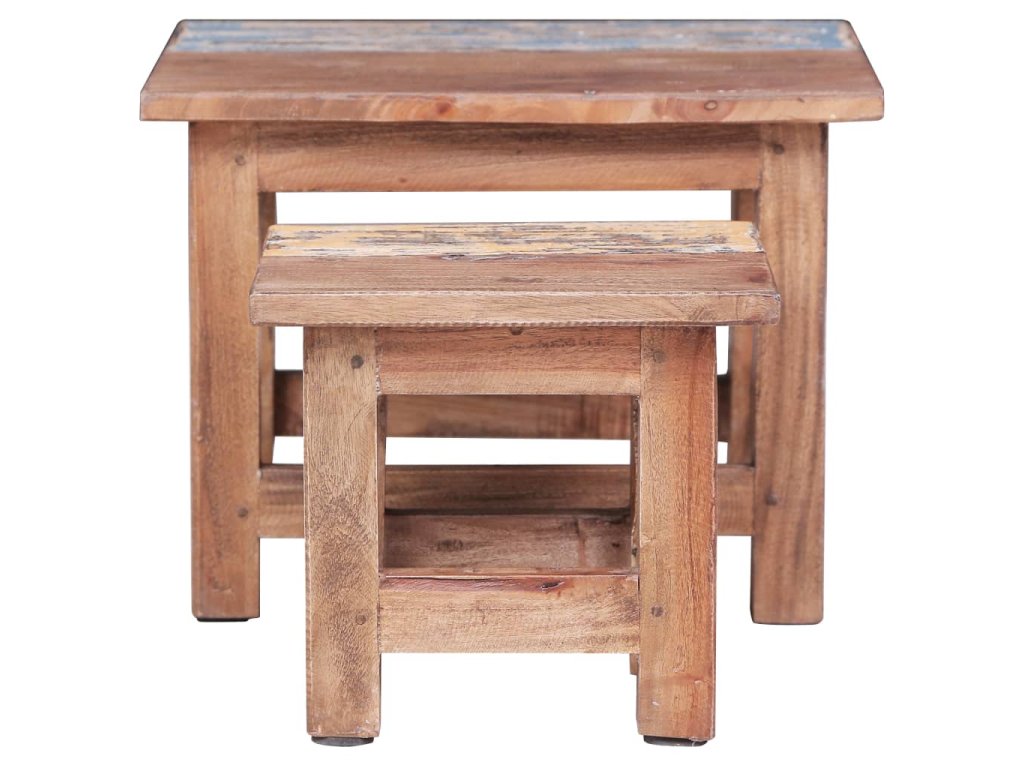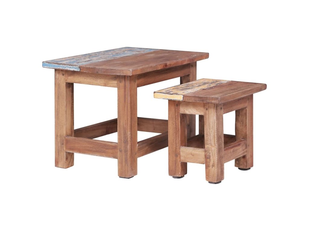 Táto súprava stolov z masívneho dreva vyrobená z masívneho mahagónového dreva je mimoriadne odolná a pevná. Mahagón je tropické tvrdé drevo, ktoré vyniká svojou krásou, trvácnosťou a farbou. Špeciálne remeselné opracovanie dodáva tomuto výrobku hrejivý a autentický vintage vzhľad. Stolová súprava je plne ručne vyrobená a každý krok procesu je vykonávaný s najväčšou starostlivosťou, či už ide o leštenie, maľovanie alebo lakovanie. Okrem toho sa tieto hniezdne stolíky dajú použiť aj ako konferenčné stolíky, pohovkové stolíky, stolíky do obývačky, nočné stolíky atď.