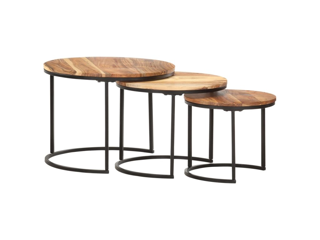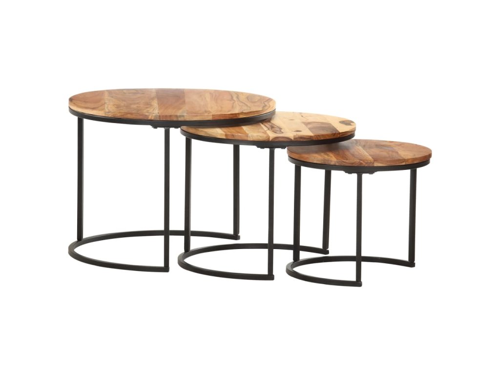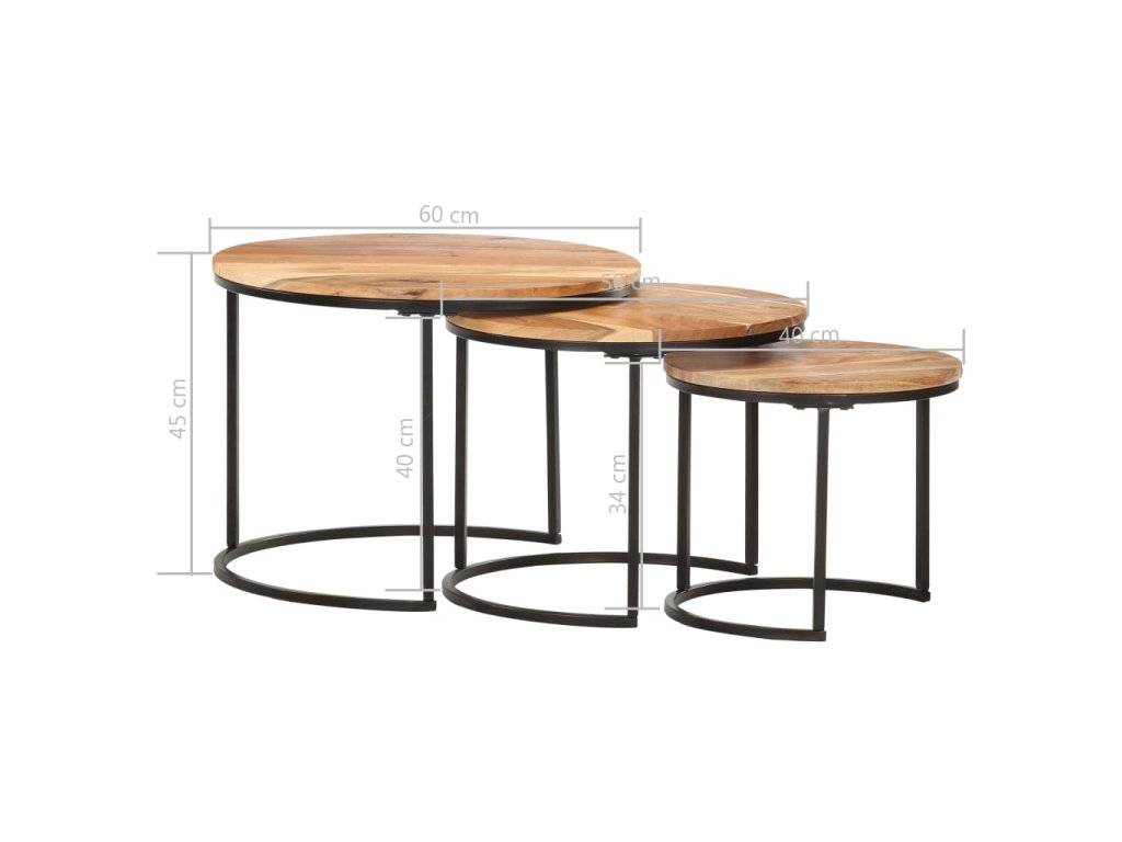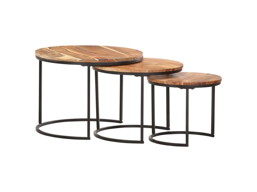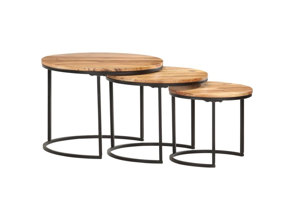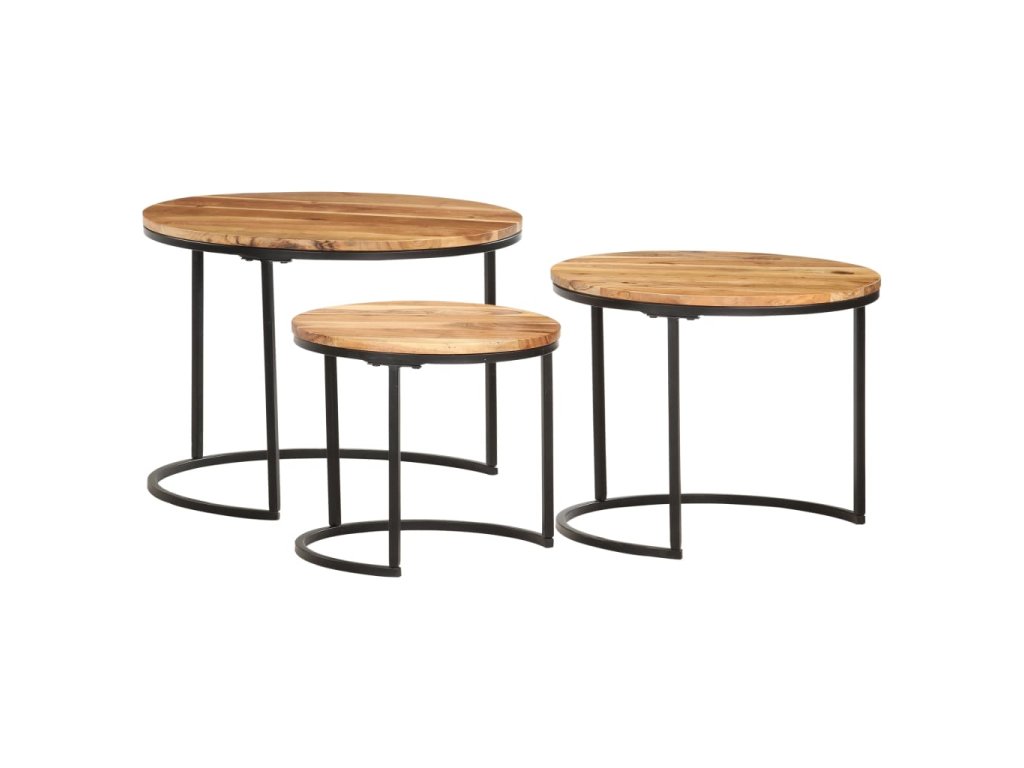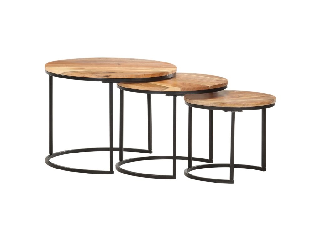 Túto sadu stolov môžete umiestniť do rohu akejkoľvek miestnosti alebo na koniec chodby. Zasúvacie stolíky sú vyrobené z masívneho akáciového dreva s olejovým povrchom a vyznačujú sa rafinovaným vzhľadom. Ľahko sa čistia vlhkou handričkou. Stolíky môžu byť navyše uložené pod sebou, aby sa šetrilo miesto. Stolíky sa musia namontovať.