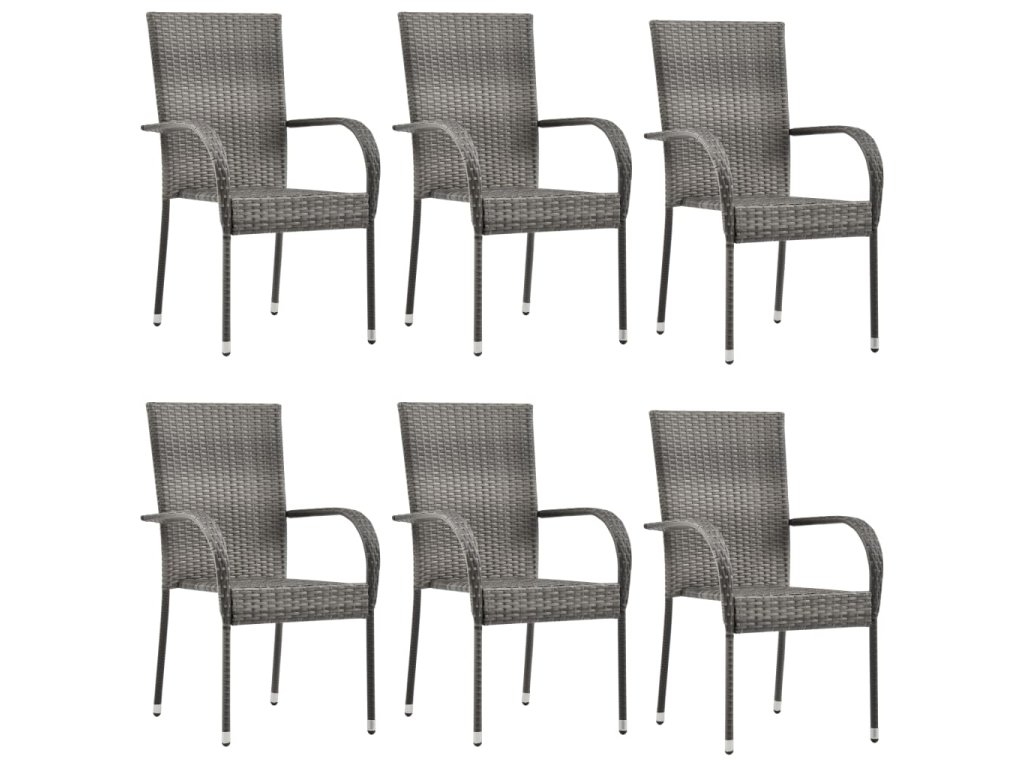 vidaXL Stohovateľné vonkajšie stoličky 6 ks sivé polyratanové