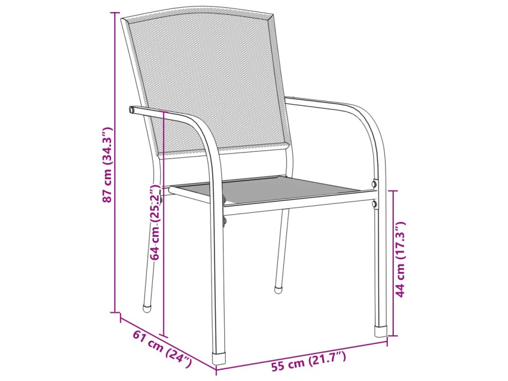 vidaXL Stohovateľné záhradné stoličky 3 ks antracit práškovaná oceľ