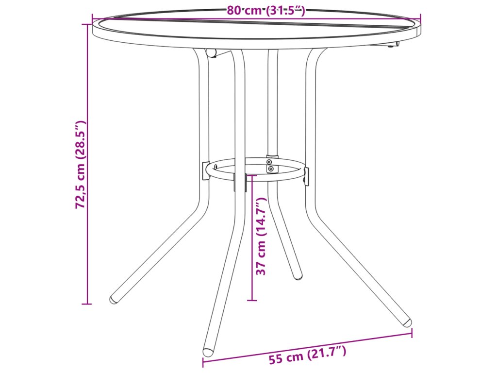 - Rozmery: 80 x 72,5 cm (Priemer x V)
