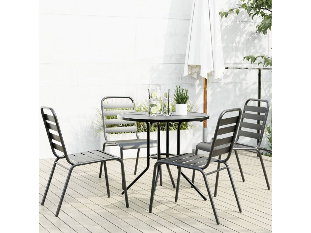 vidaXL Stohovateľné záhradné stoličky 5 ks antracit práškovaná oceľ