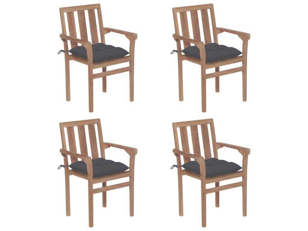 vidaXL Stohovateľné záhradné stoličky s podložkami 4 ks tíkový masív