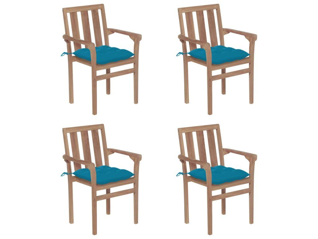 vidaXL Stohovateľné záhradné stoličky s podložkami 4 ks tíkový masív
