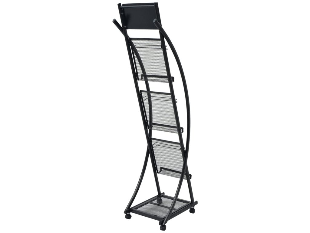 Tri veľké priehradky ponúkajú dostatok priestoru na vystavenie A4 brožúr, kníh alebo časopisov vedľa seba. Môžete si vytlačiť alebo prilepiť logo vašej firmy na vrchnú dosku. Vďaka kolieskam sa ľahko presúva a má moderný dizajn, ktorý sa hodí do takmer akéhokoľvek interiéru. Stojan môžete umiestniť do kancelárie, čakárne, obývacej izby alebo spálne.