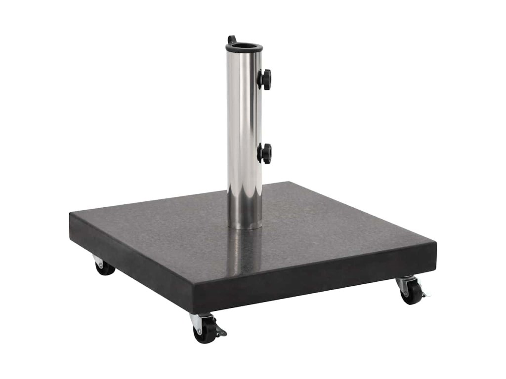 Tento podstavec na slnečník je vyrobený z pevnej žuly s hmotnosťou 30 kg, a preto je mimoriadne stabilný a postará sa o to, aby slnečník držal na mieste aj vo veternom počasí. Stojan má 2 uzamykacie skrutky, ktoré udržujú tyč slnečníka na svojom mieste. V balení sa nachádza jeden adaptér, vďaka ktorému je držiak na slnečník vhodný na tyče s priemerom 38/48 mm. Vďaka 4 otočným kolieskam môžete slnečník jednoducho premiestniť.
