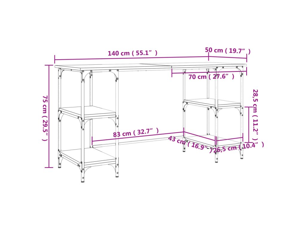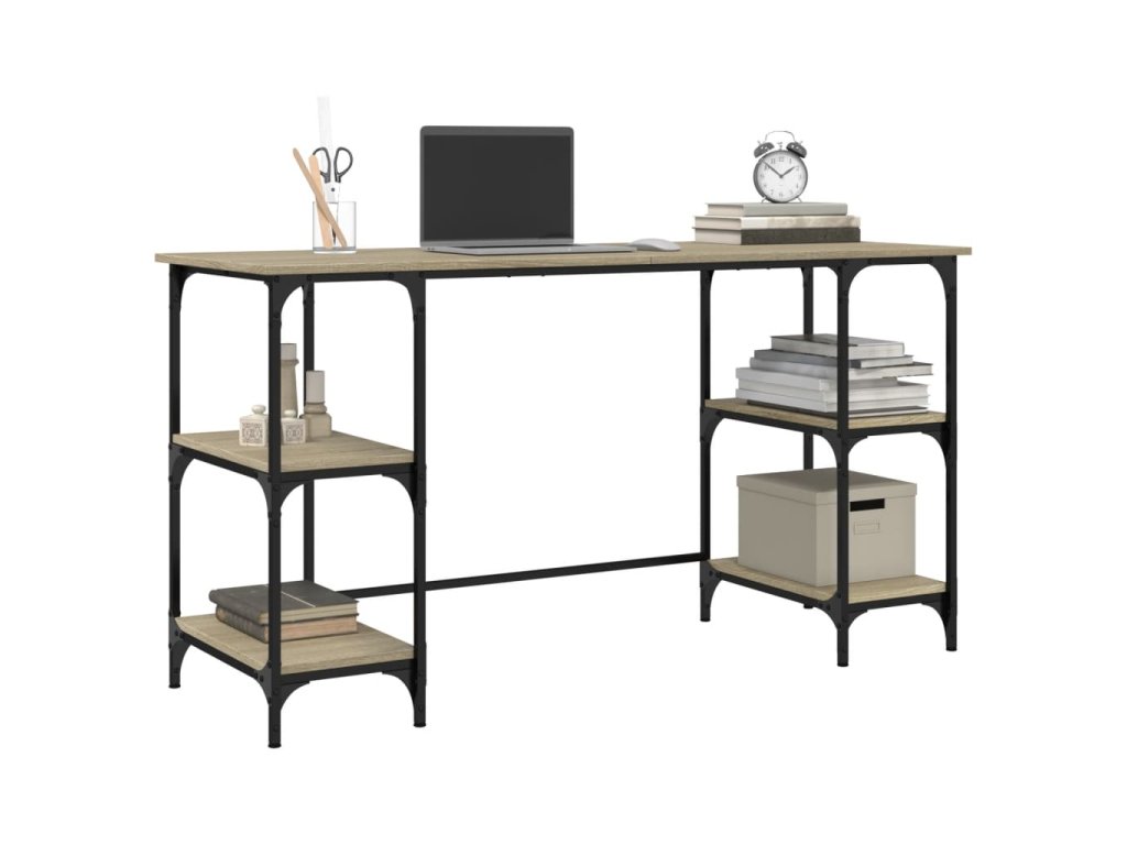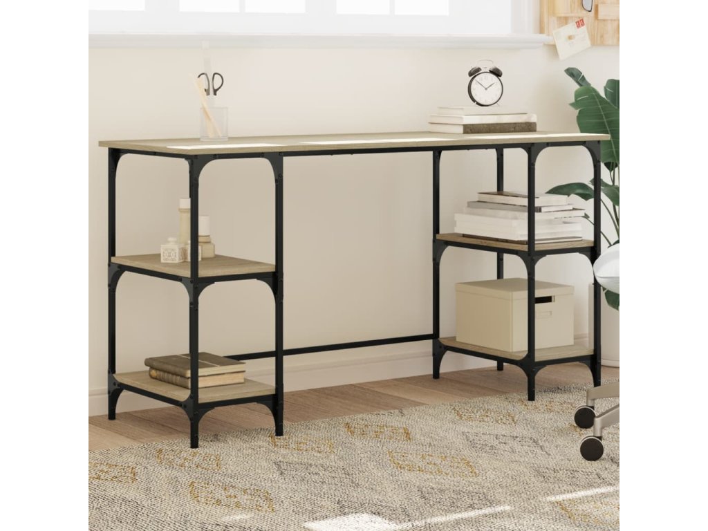 vidaXL Stôl dub sonoma 140x50x75 cm kov a kompozitné drevo
