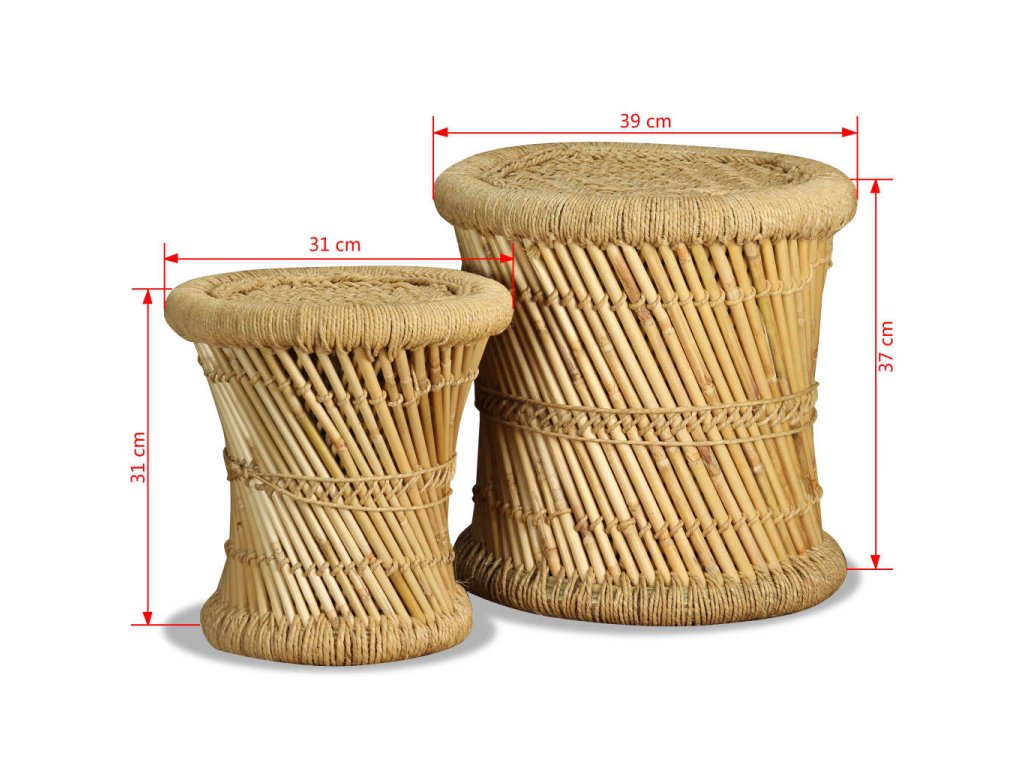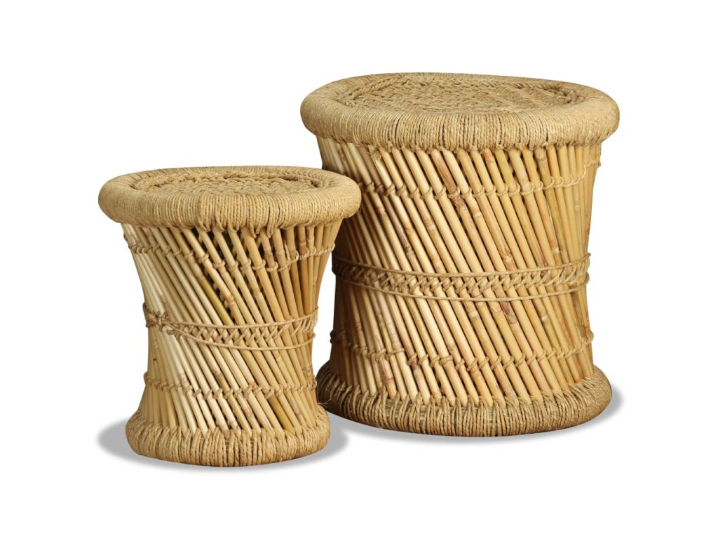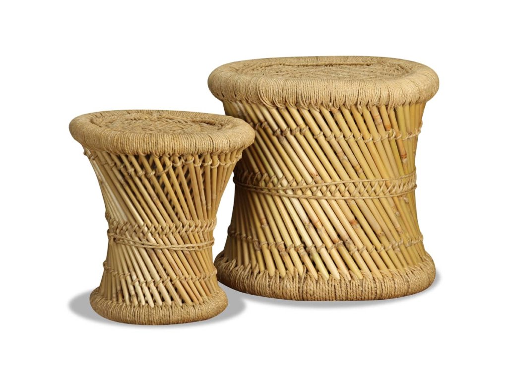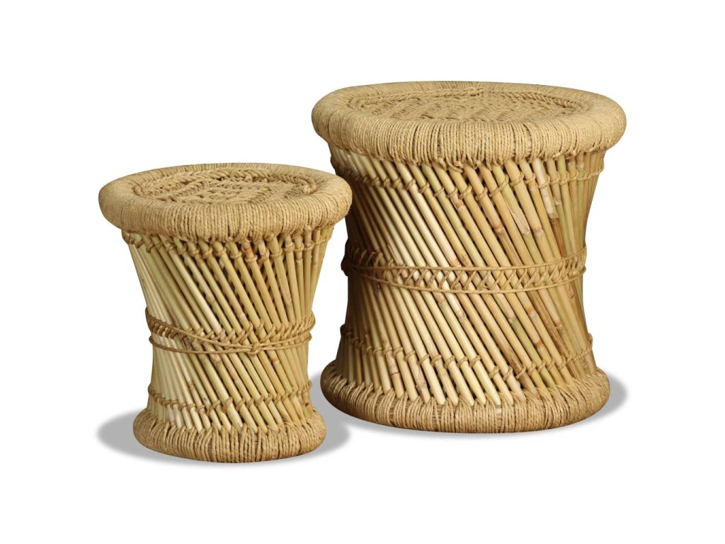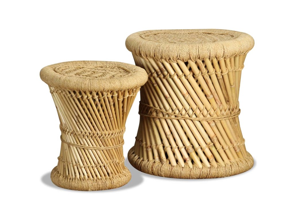 Táto sada pozostáva z dvoch bambusových stoličiek s atraktívnym, prírodným dizajnom. Tieto praktické stoličky predstavujú pútavý doplnok do jedálne, záhrady či na terasu. Vďaka rustikálnemu pletenému dizajnu a prírodným materiálom sa tieto stoličky budú hodiť do rôznych priestorov - do domácnosti, do záhrady aj do kaviarne. Môžete ich používať aj ako príručné stolíky.