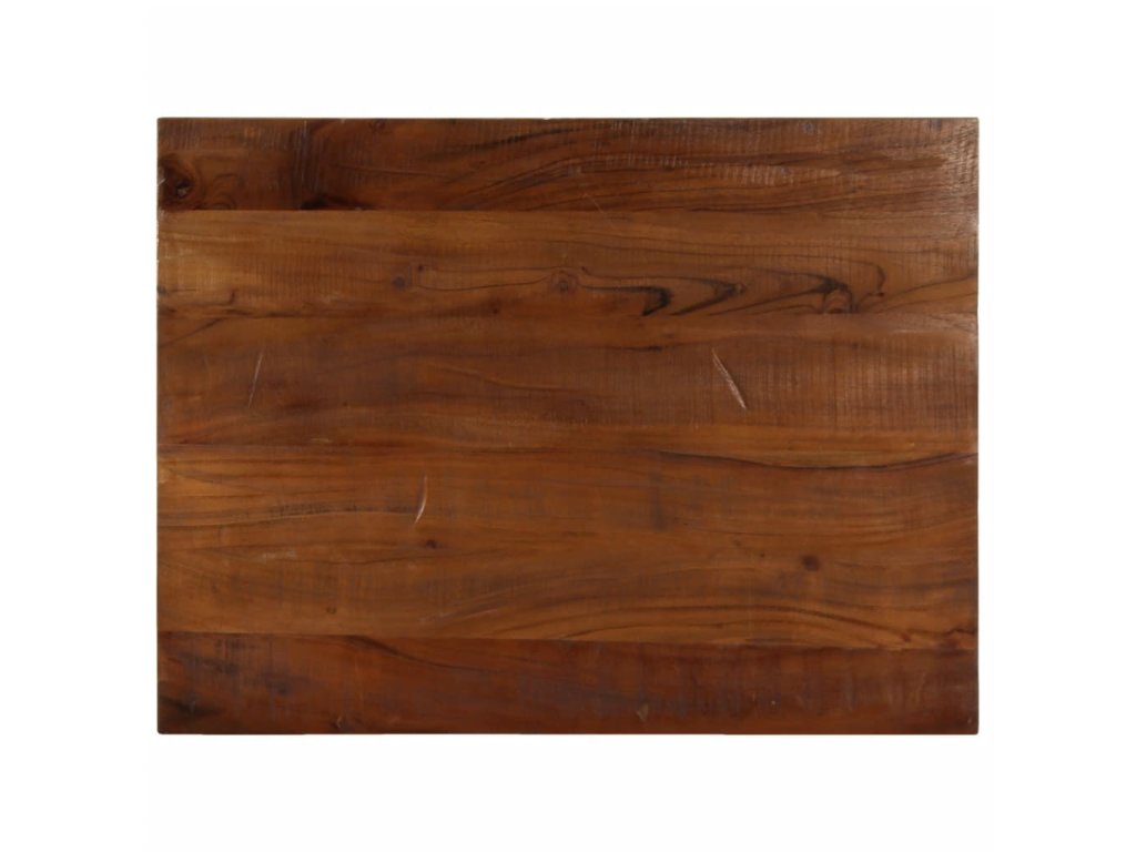 - Masívne regenerované drevo: Masívne recyklované drevo pozostáva z opätovne použitého dreva, ako je teakové drevo, mangovníkové drevo, borovicové drevo a bukové drevo. Tieto materiály sú recyklované zo starých budov, ako sú továrne, prístrešky a lode. Keďže každý kus je vyrobený ručne, farby jednotlivých výrobkov sa môžu líšiť.