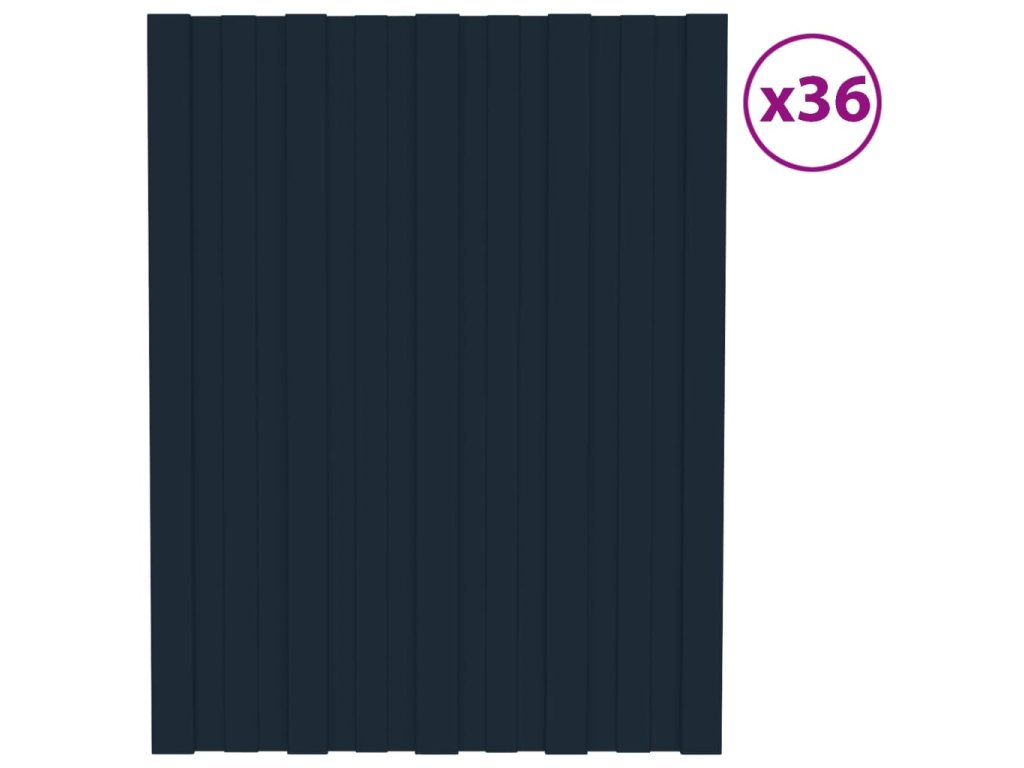 vidaXL Strešné panely 36 ks pozinkovaná oceľ antracitové 60x45 cm