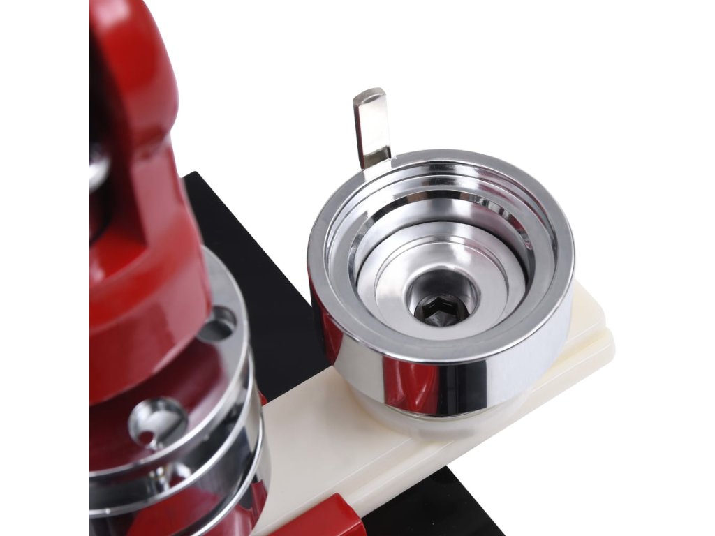 Stroj na výrobu odznakov sa dodáva spolu so sadou matríc určených na výrobu 37 mm odznakov. Dizajn so zarážkou zaručuje spoľahlivé zarovnanie hornej a dolnej matrice. Posuvná základňa umožňuje presnejšiu a rýchlejšiu prácu. S textúrovanou rukoväťou sa dobre pracuje a na vytvorenie odznaku tak stačí len mierna sila. Zariadenie sa preto veľmi ľahko ovláda. V balení navyše nájdete aj okrúhlu rezačku, aby ste mohli podľa potreby upraviť priemer rezu.