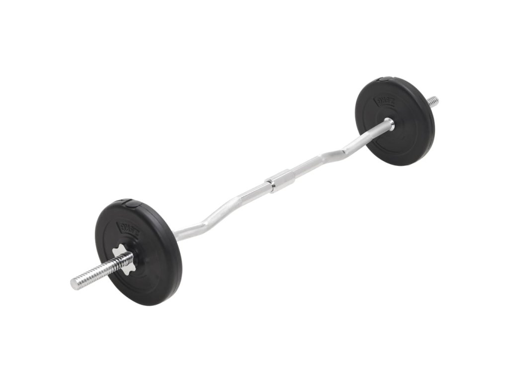 - Hmotnosť obojručnej činky (zakrivená): 6,4 kg