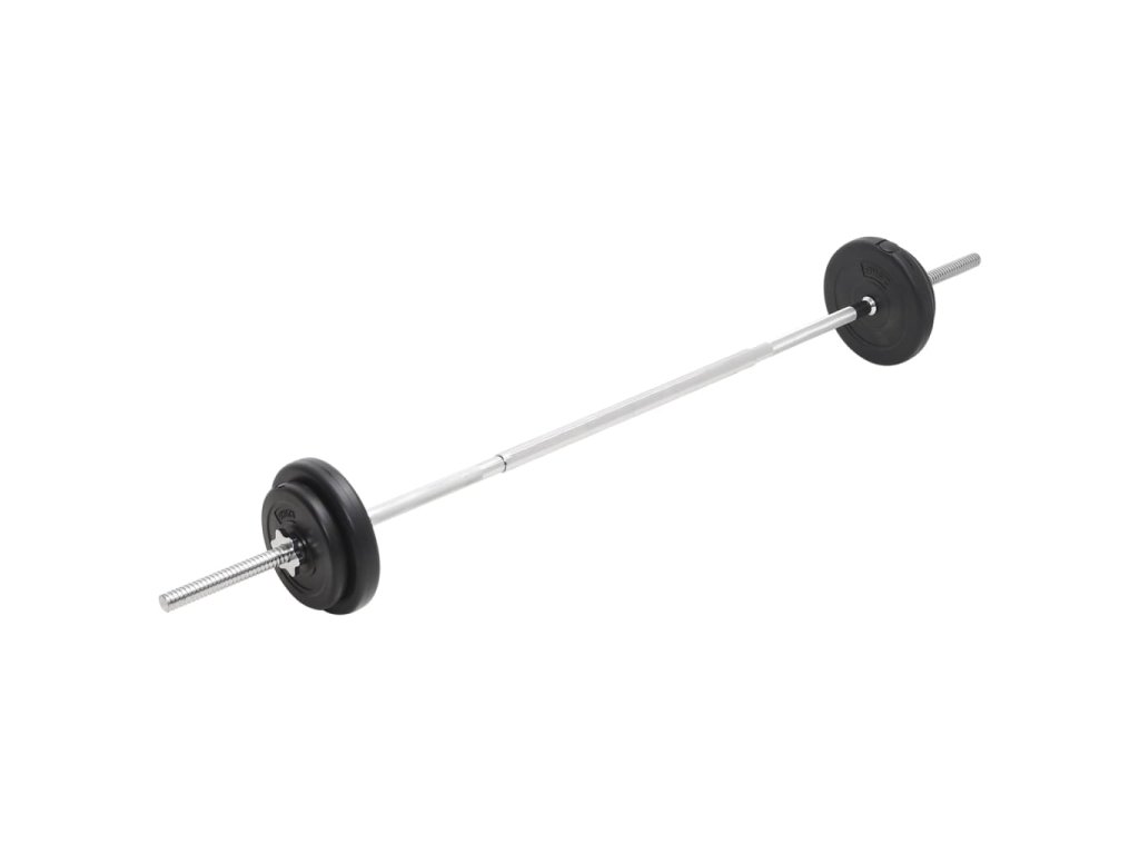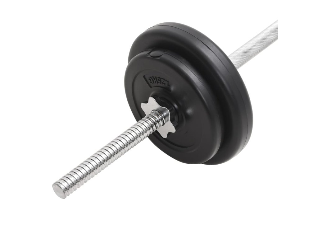 - Hmotnosť obojručnej činky (rovná): 6,4 kg