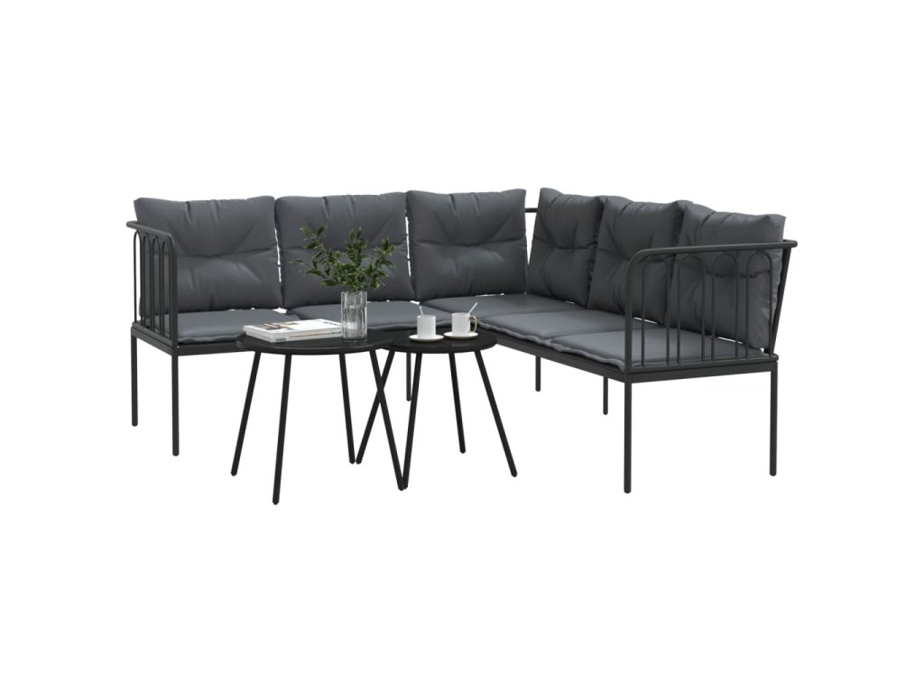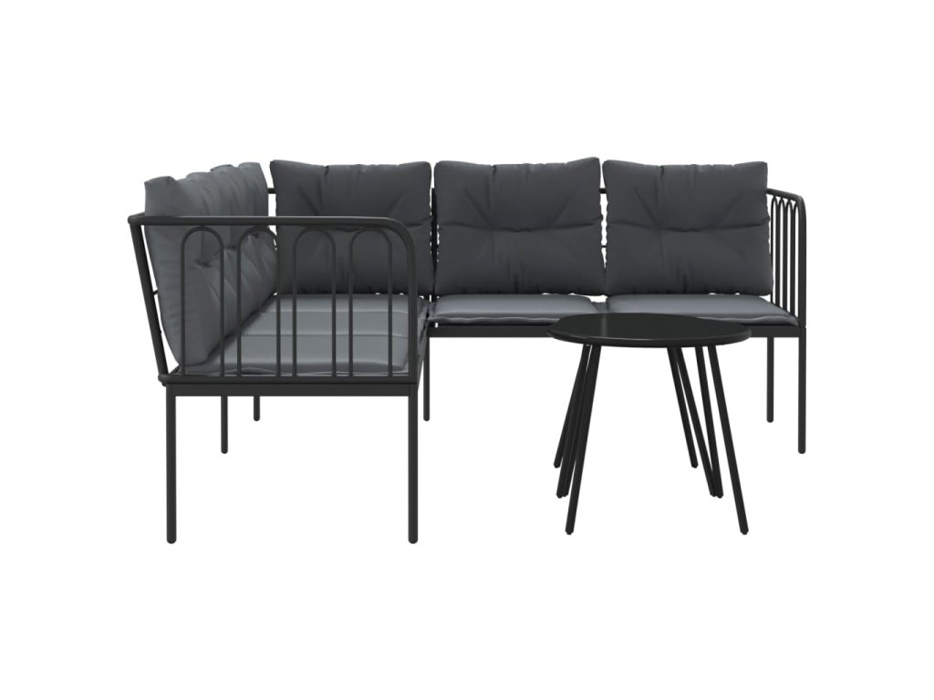 vidaXL Súprava záhradných pohoviek s vankúšmi čierna oceľ a textilén