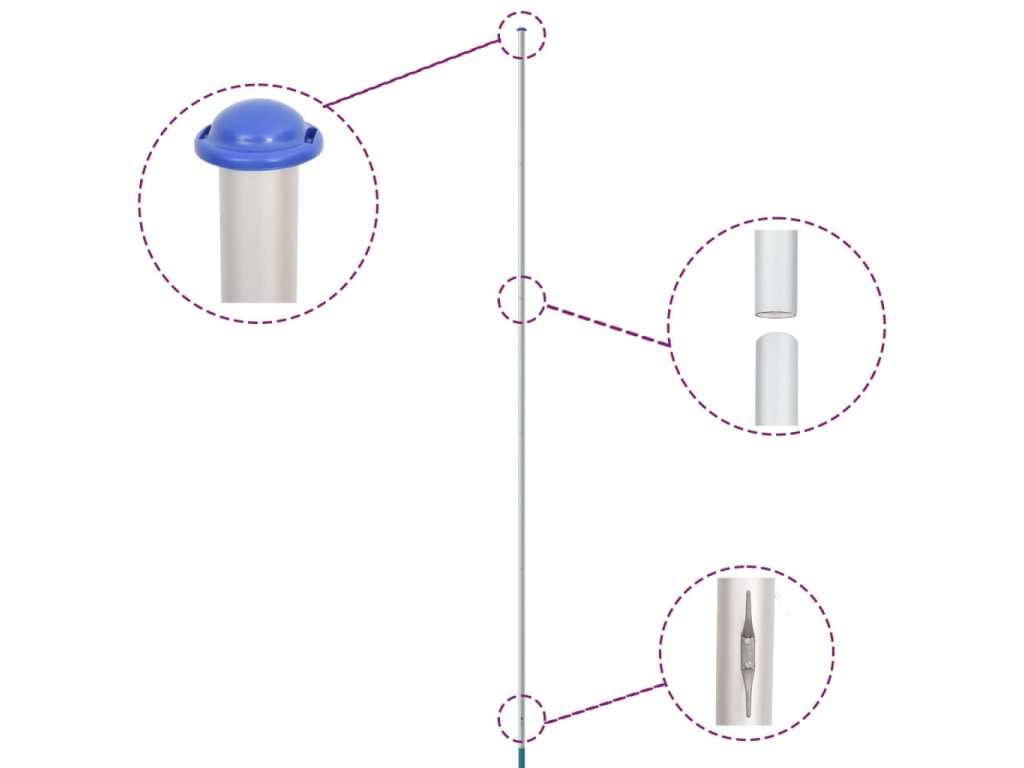 - Jednoduchá obsluha: Vďaka jednoduchému zásuvnému systému je možné kempingový vlajkový stožiar okamžite postaviť. Svoju vlajku môžete bez problémov zdvihnúť a spustiť pomocou priloženého lana a krúžkov.