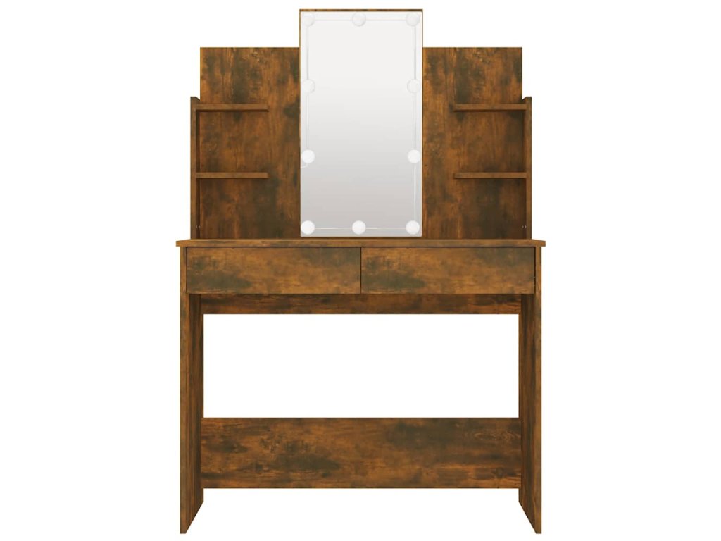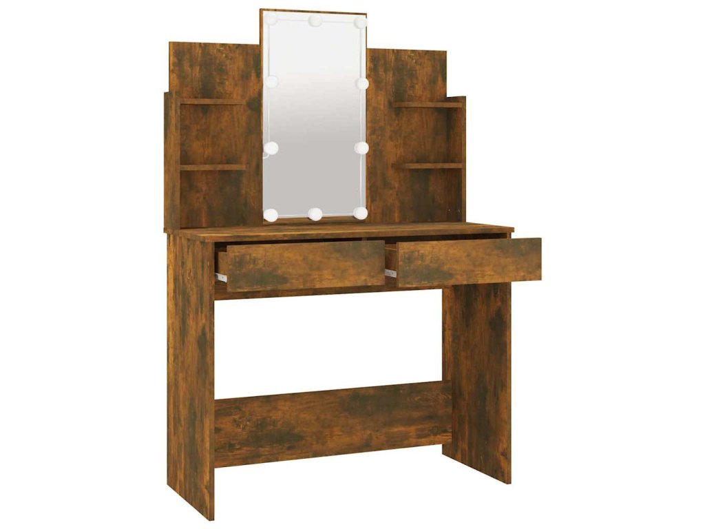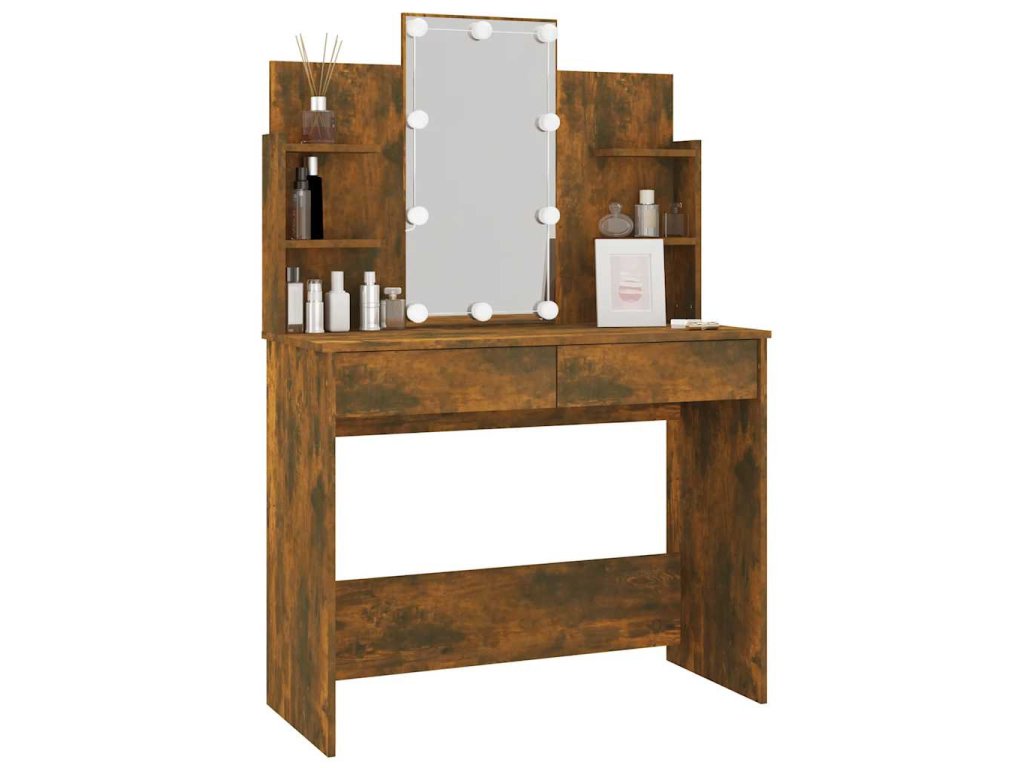 - Praktický úložný priestor: Tento kozmetický stolík má aj otvorené police a dve zásuvky, ktoré ponúkajú miesto pre vaše líčidlá a udržujú všetko na svojom mieste.