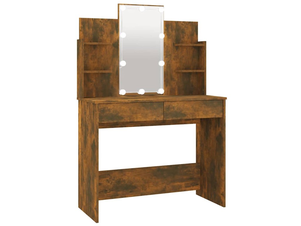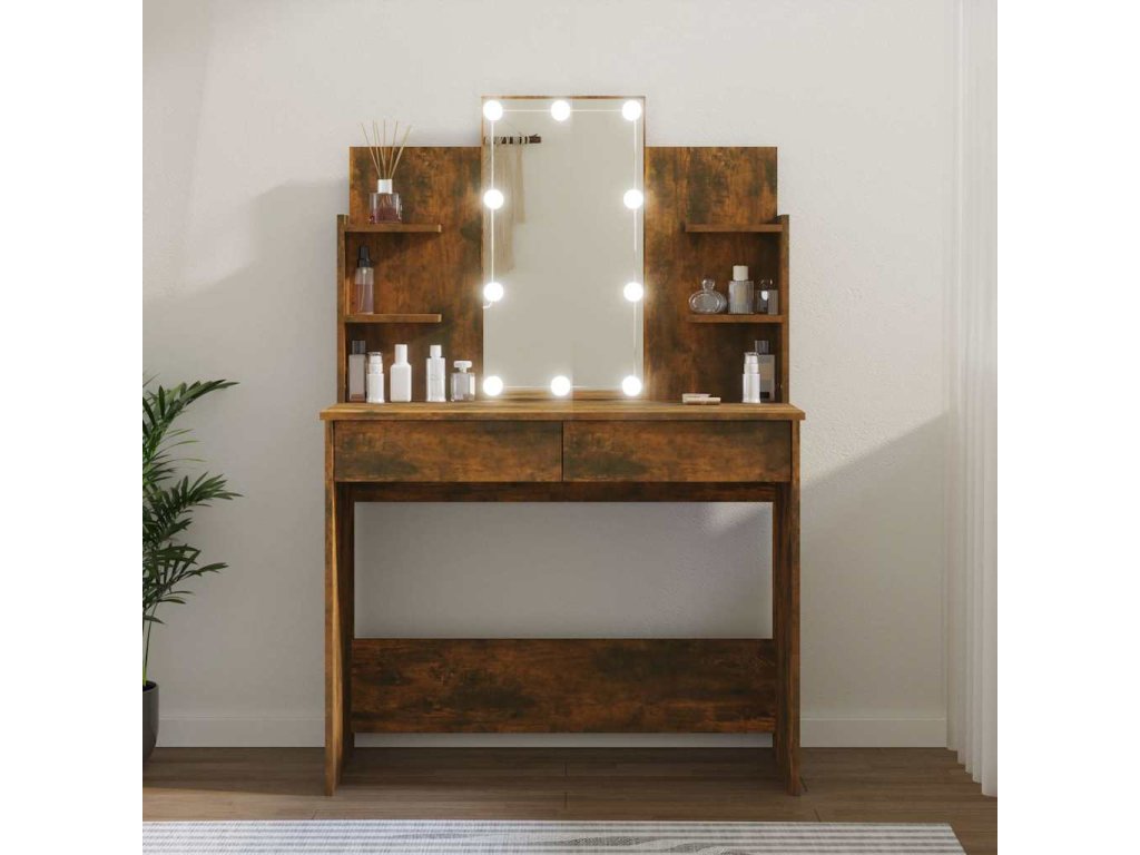 vidaXL Toaletný stolík s LED dymový dub 96x40x142 cm