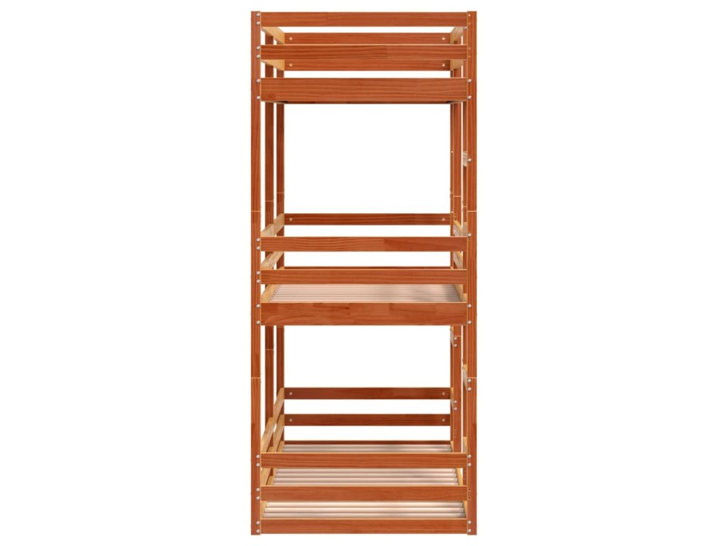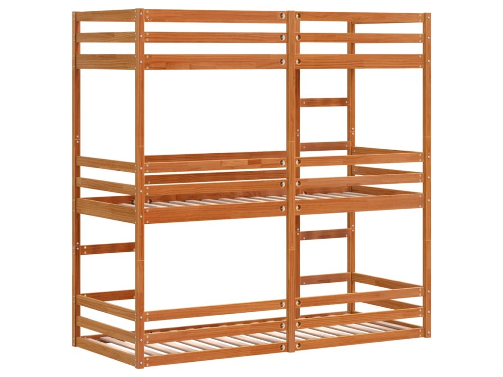 vidaXL Trojitá poschodová posteľ voskovohnedá 90x200 cm borovic. masív