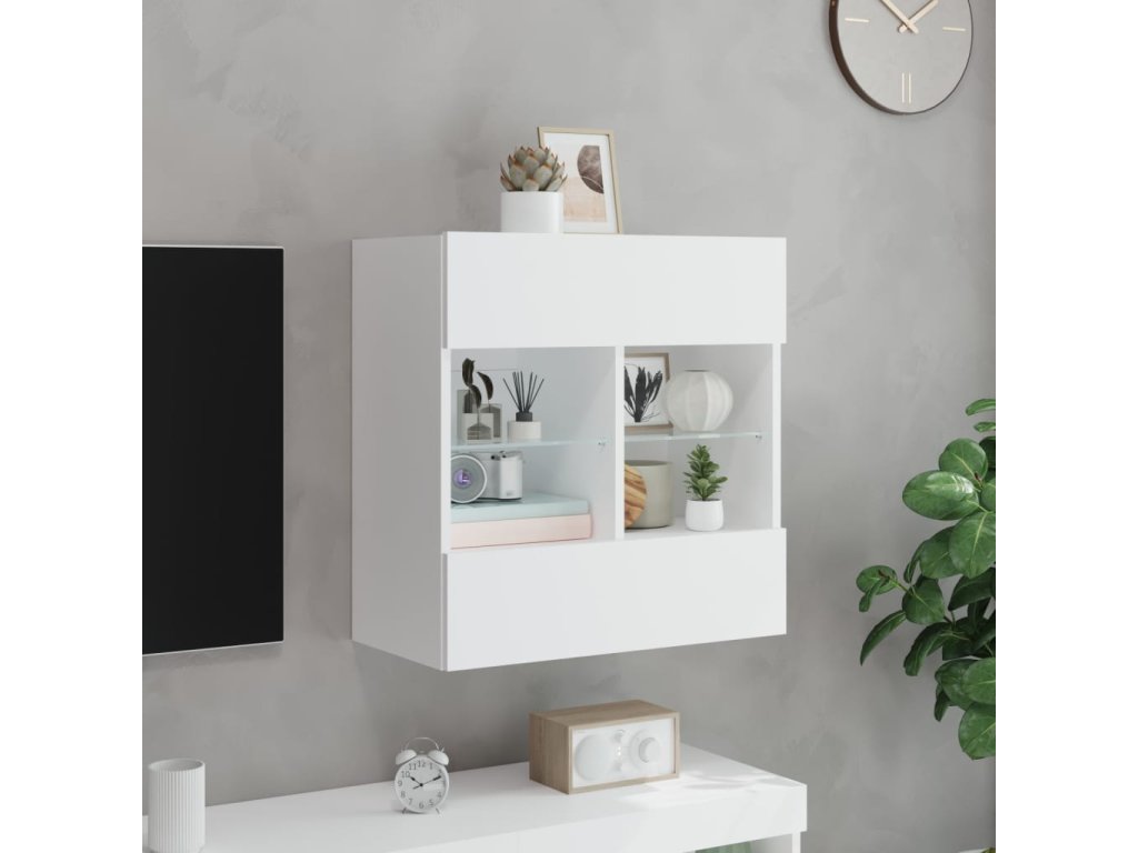 vidaXL TV nástenná skrinka s LED svetlami biela 58,5x30x60,5 cm