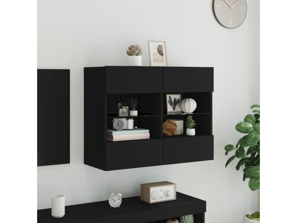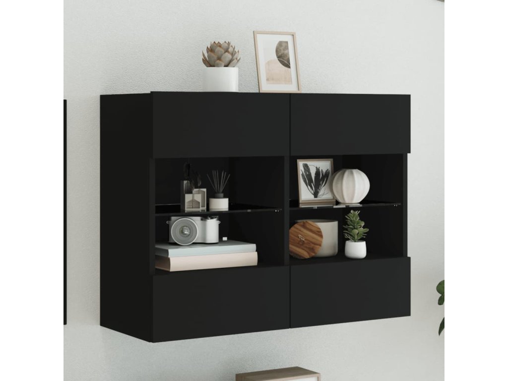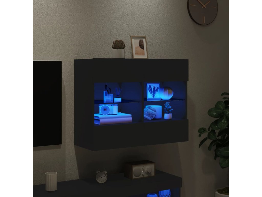 vidaXL TV nástenná skrinka s LED svetlami čierna 78,5x30x60,5 cm