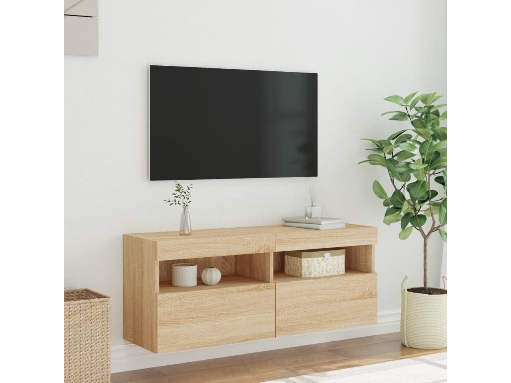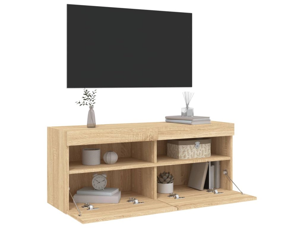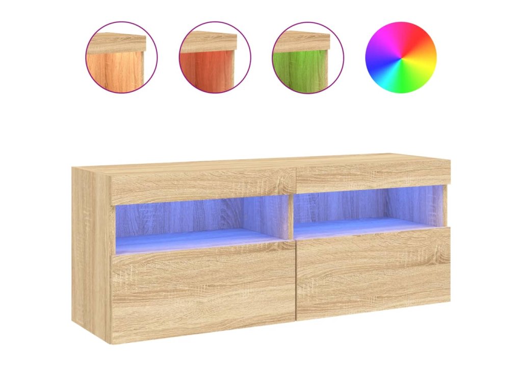 vidaXL TV nástenná skrinka s LED svetlami dub sonoma 100x30x40 cm