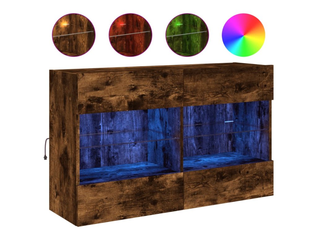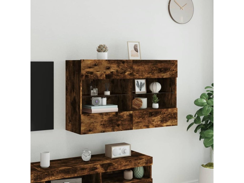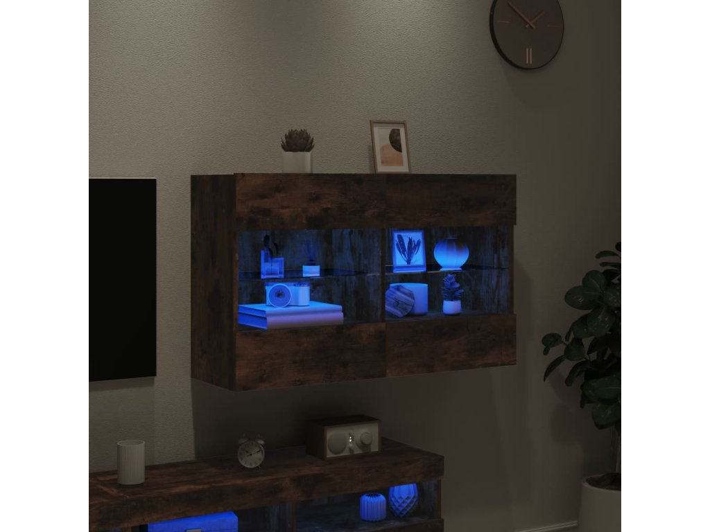 vidaXL TV nástenná skrinka s LED svetlami dymový dub 98,5x30x60,5 cm