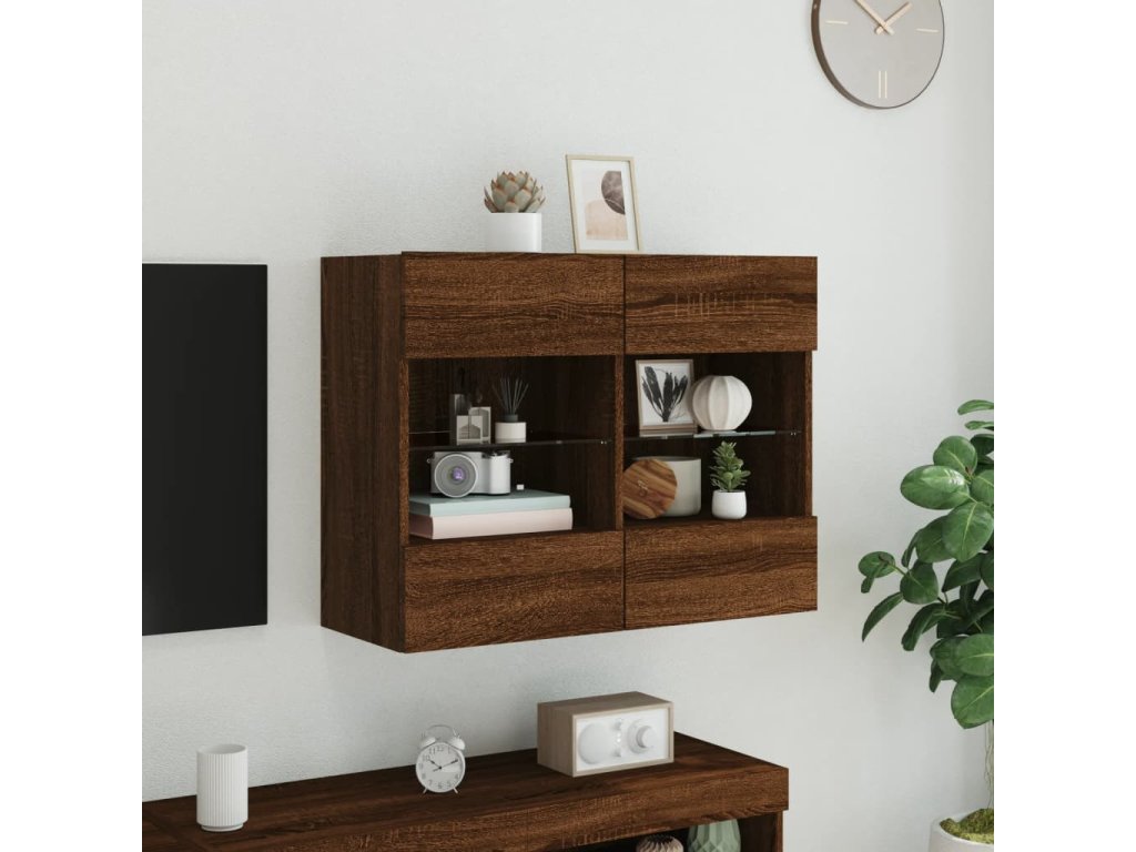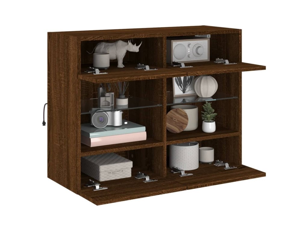 vidaXL TV nástenná skrinka s LED svetlami hnedý dub 78,5x30x60,5 cm