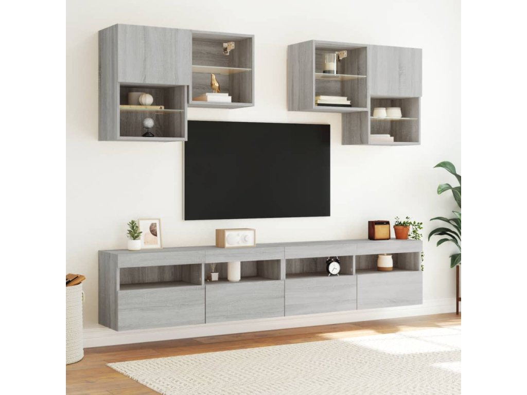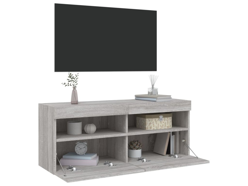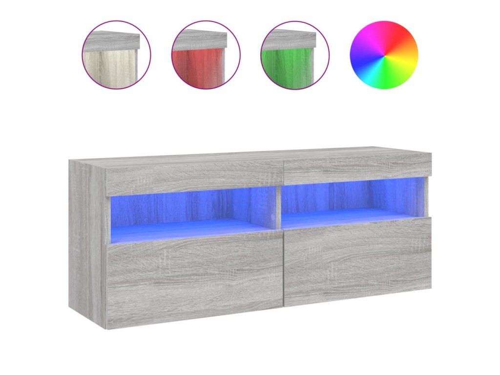 vidaXL TV nástenná skrinka s LED svetlami sivá sonoma 100x30x40 cm