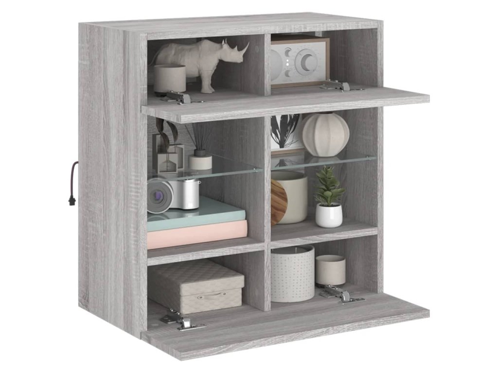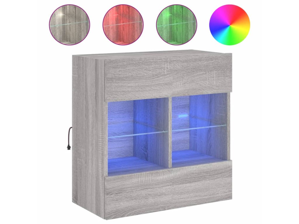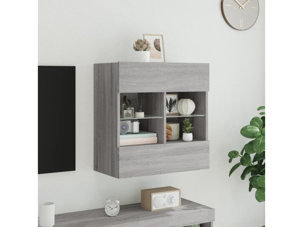 vidaXL TV nástenná skrinka s LED svetlami sivá sonoma 58,5x30x60,5 cm