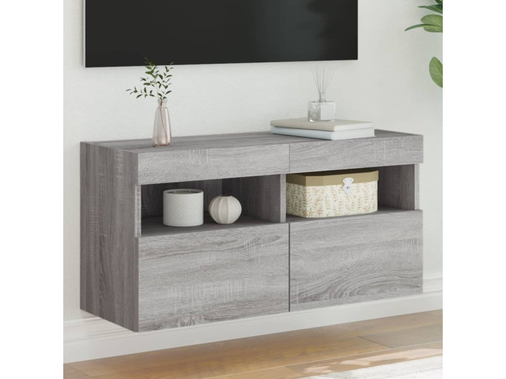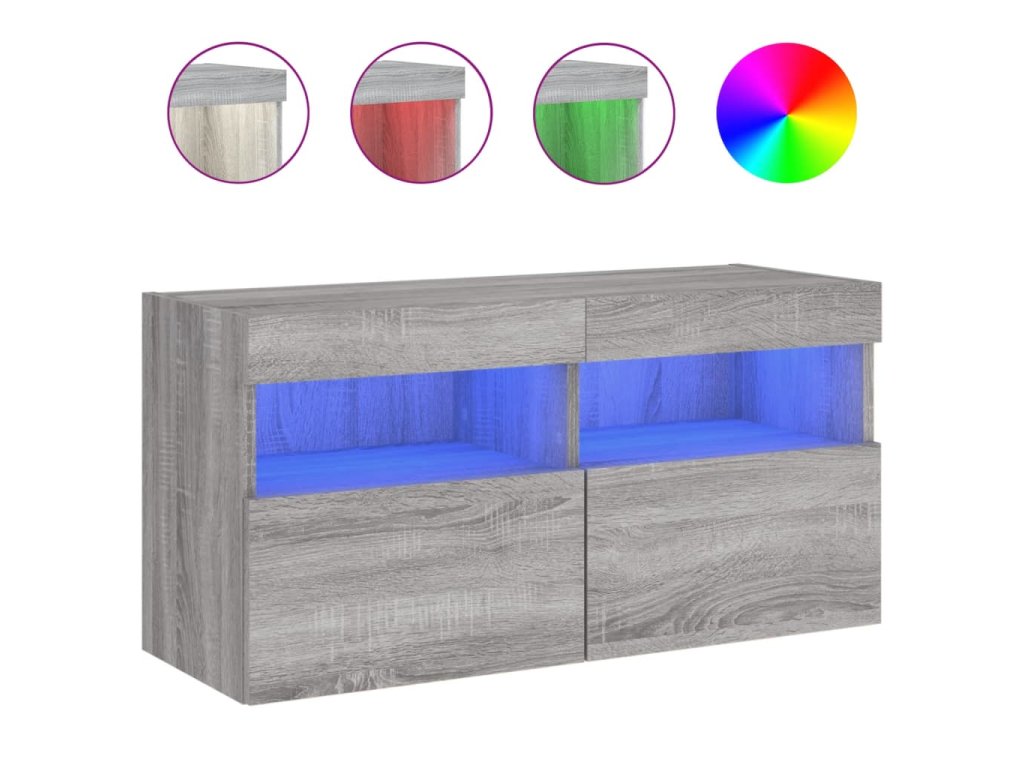 vidaXL TV nástenná skrinka s LED svetlami sivá sonoma 80x30x40 cm
