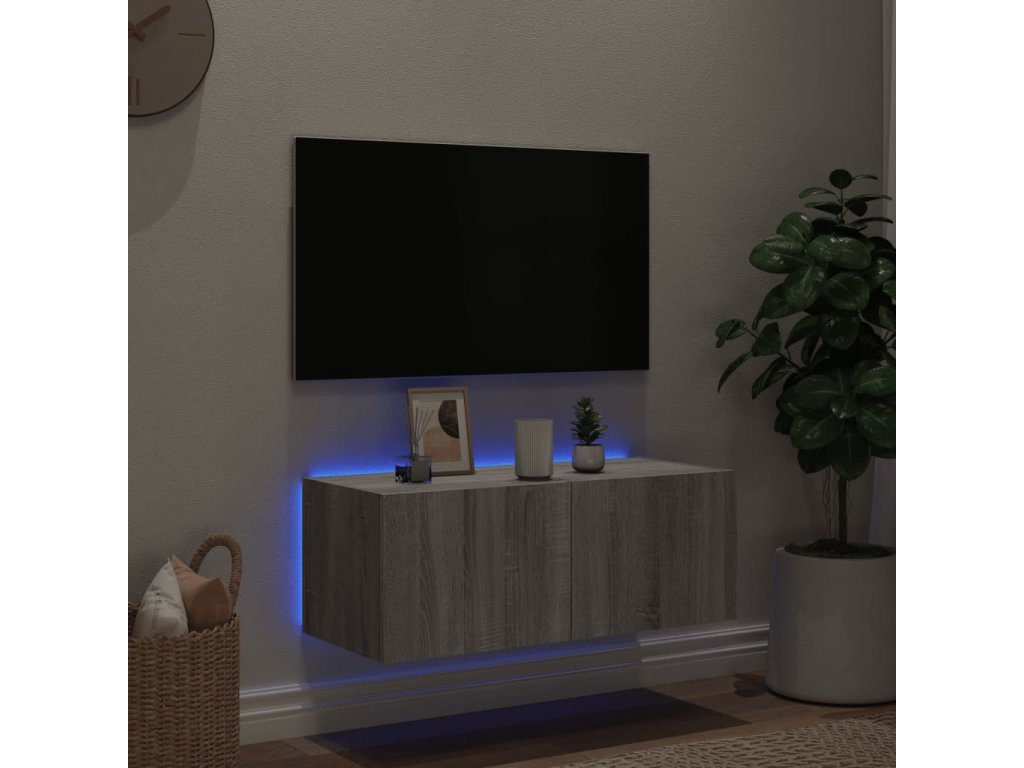 vidaXL TV nástenná skrinka s LED svetlami sivá sonoma 80x35x31 cm