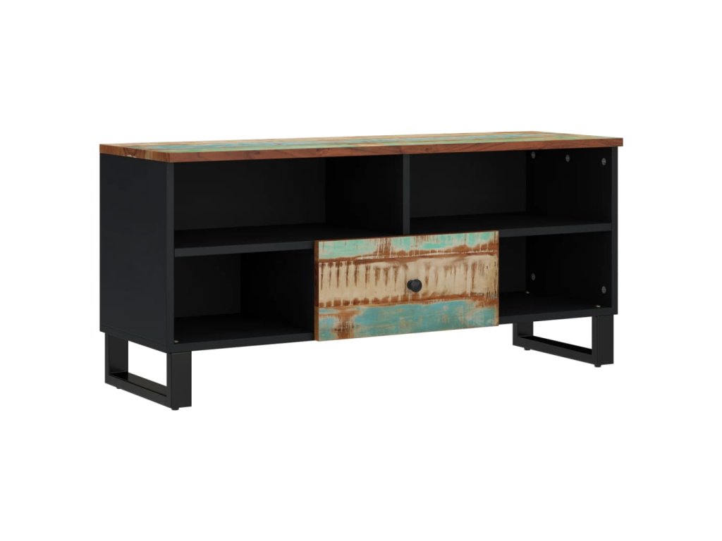 - Masívne recyklované drevo: Táto skrinka na médiá je vyrobená z masívneho recyklovaného dreva a spracovaného dreva. Masívne regenerované drevo pozostáva z opätovne použitého dreva, ako je teak, mangovníkové drevo, borovicové drevo a buk. Tieto materiály sú recyklované zo starých budov, ako sú továrne, prístrešky a lode.