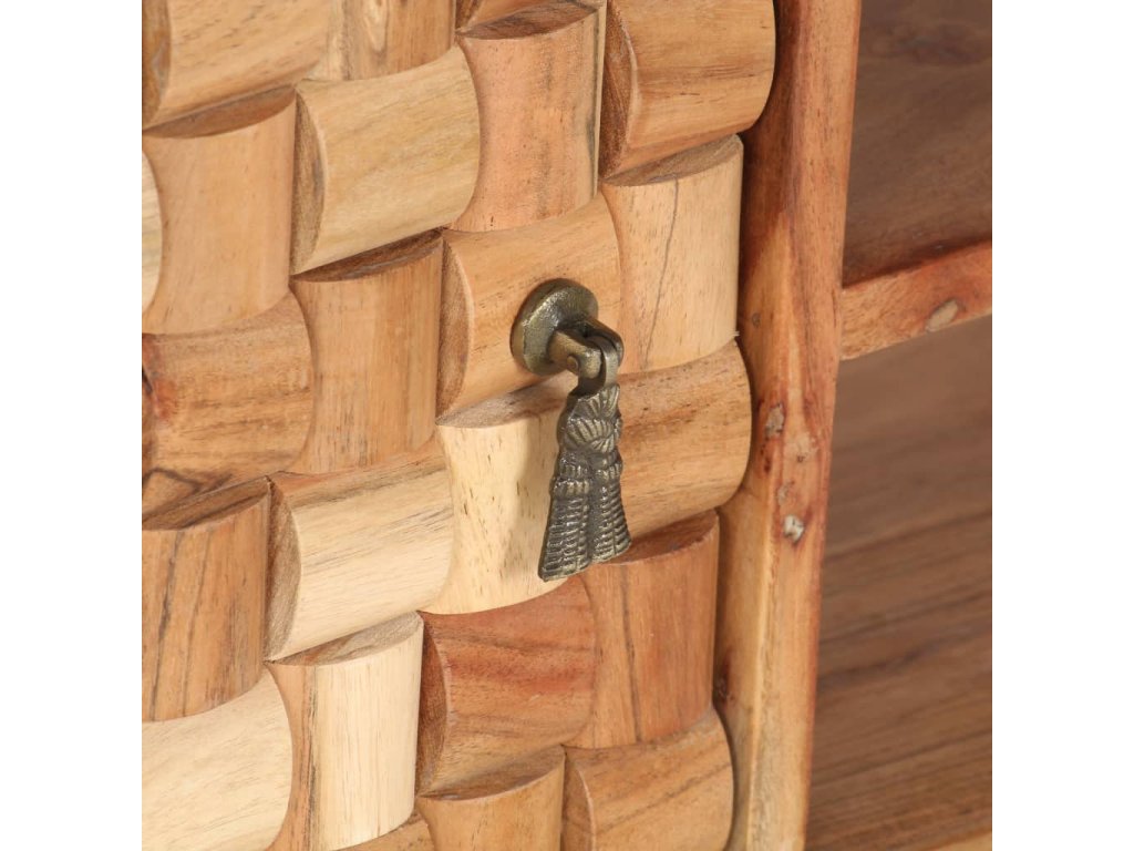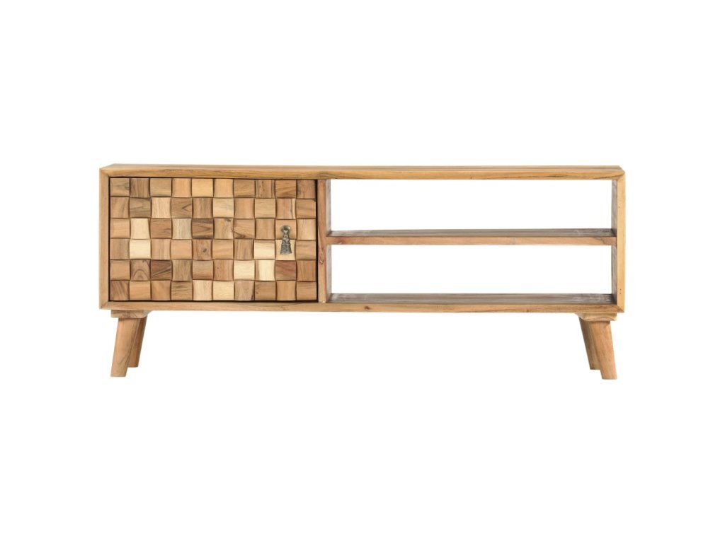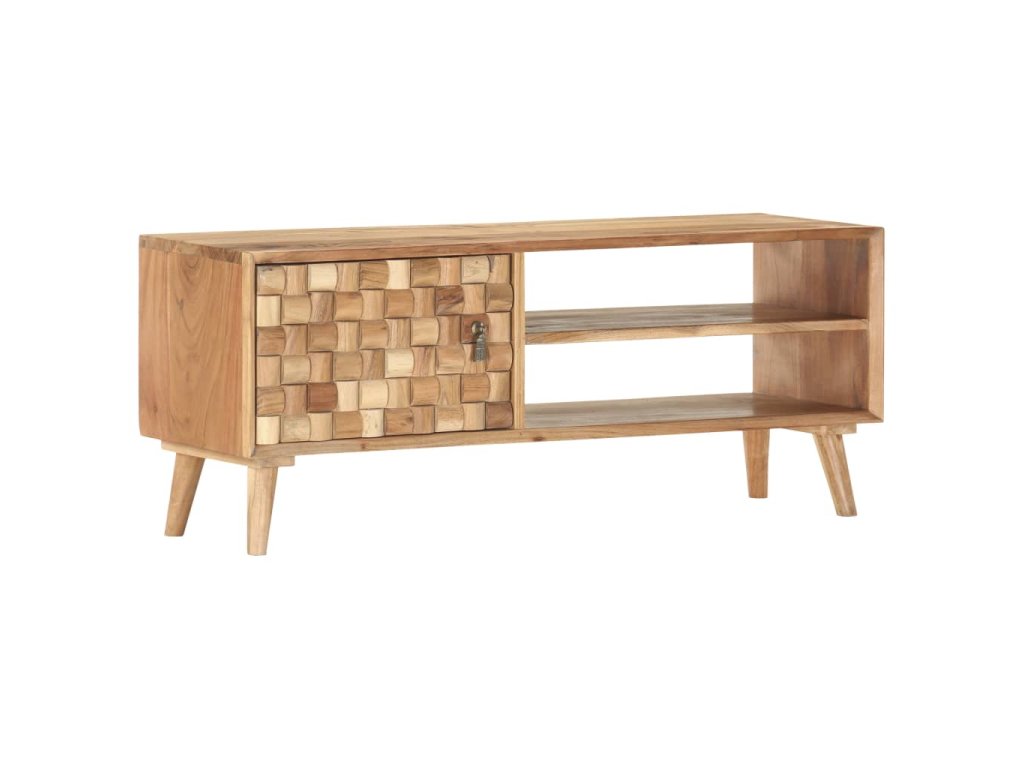 Táto skrinka je vyrobená z masívneho akáciového dreva s prírodným povrchom, ktoré je odolné voči poveternostným vplyvom a trvácne. Každý krok procesu výroby sa vykonáva s maximálnou starostlivosťou, či už je to leštenie, natieranie alebo lakovanie. Vďaka remeselnému spracovaniu a krásnej drevenej štruktúre je každý kus nábytku jedinečný a trochu odlišný od ostatných kusov. TV skrinka má 1 dvierka 2 oddelenia. Hladká horná doska môže byť použitá na dočasné umiestnenie ozdôb. Skrinka bola navrhnutá s dostatkom priestoru na uloženie časopisov, kníh, DVD a multimediálnych zariadení, ktoré potrebujete mať na dosah ruky. Montáž si vyžadujú iba nohy stolíka.