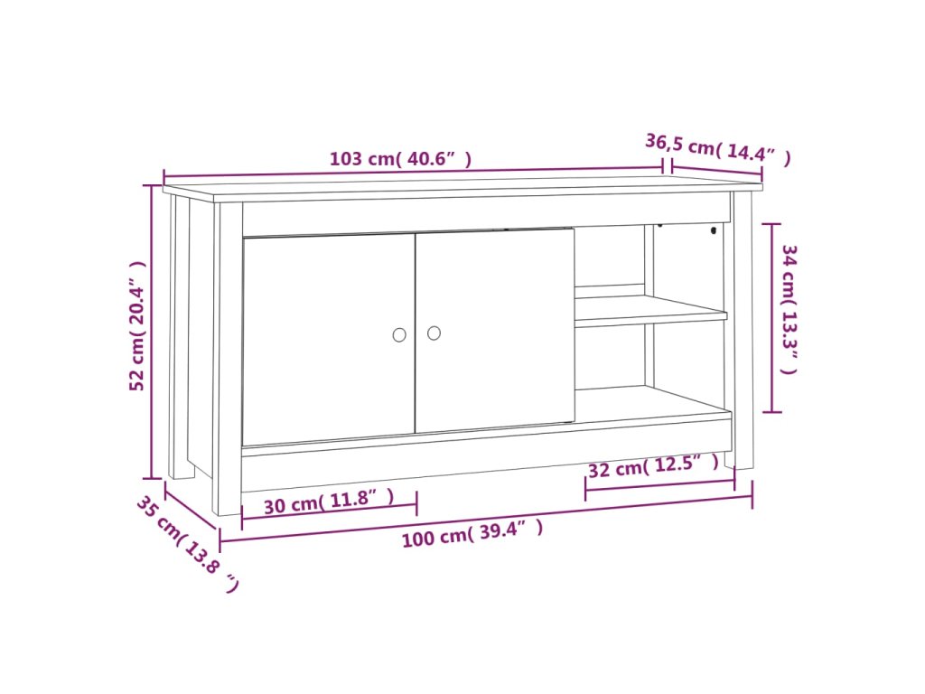 vidaXL TV skrinka 103x36,5x52 cm masívna borovica