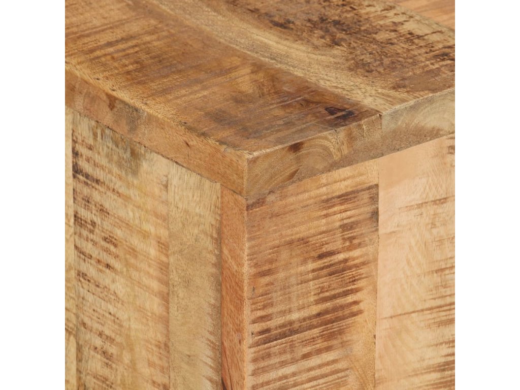 - Materiál: Masívne mangovníkové drevo s prírodnou povrchovou úpravou, oceľ