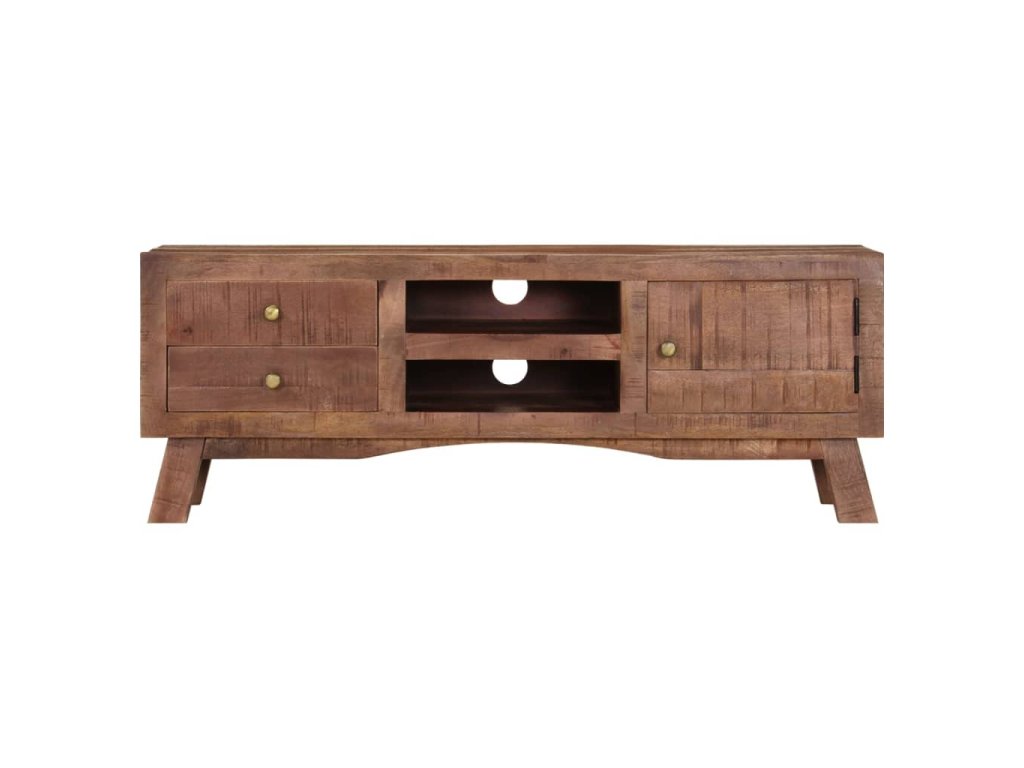 Táto klasická drevená TV skrinka, vybavená 1 priehradkou s dvierkami, 2 policami a 2 zásuvkami na rôzne predmety, bude určite praktickým a pútavým doplnkom do vašej domácnosti.