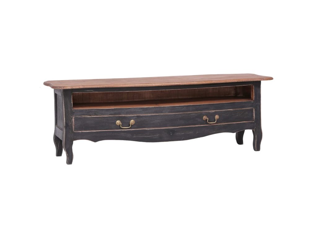 Vďaka remeselnému opracovaniu a krásnej textúre dreva má každá TV skrinka osobitý vzhľad, ktorý sa mierne odlišuje od ostatných. Výrazná skrinka na stereo s 1 veľkou zásuvkou a 1 otvoreným priečinkom sa postará o to, aby ste mali vo svojich veciach vždy poriadok. Výrobok je už zostavený, nie je potrebné ho montovať.