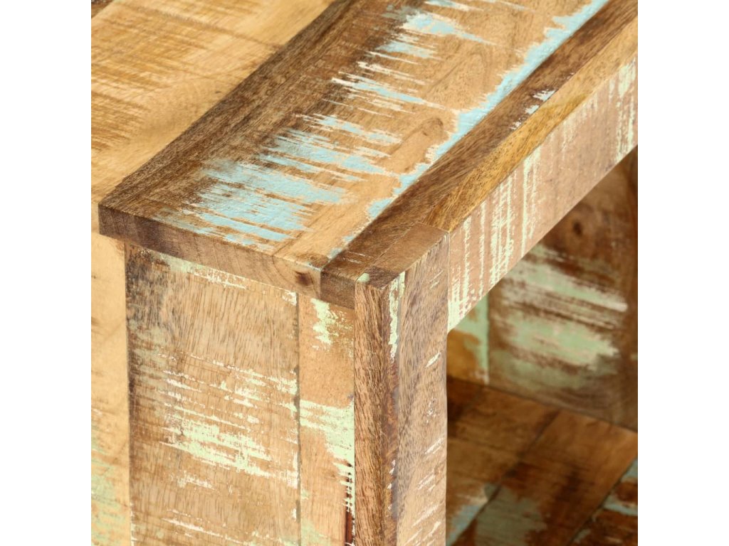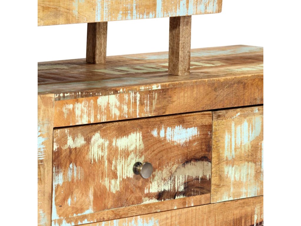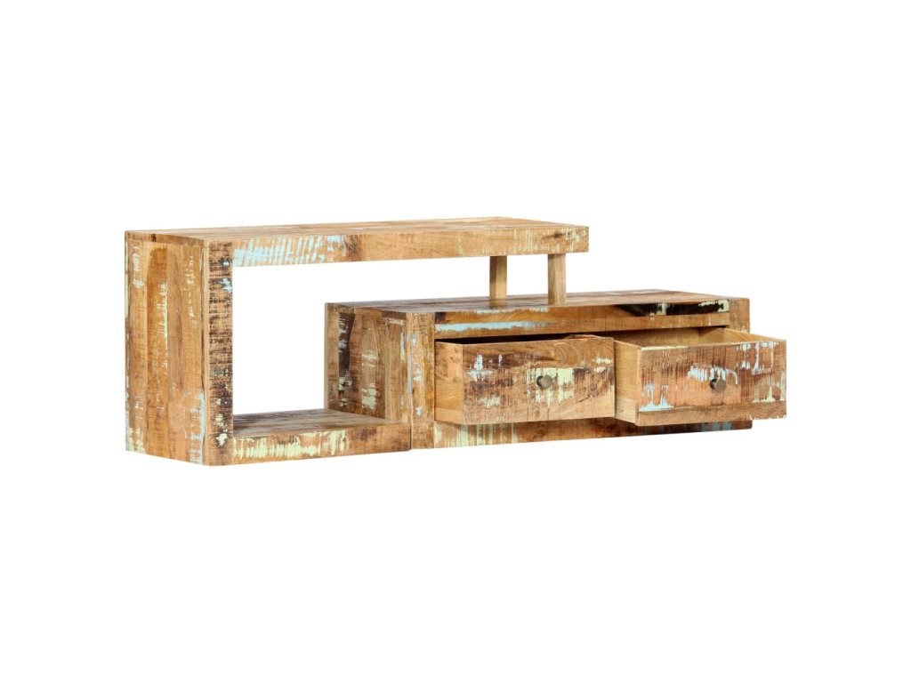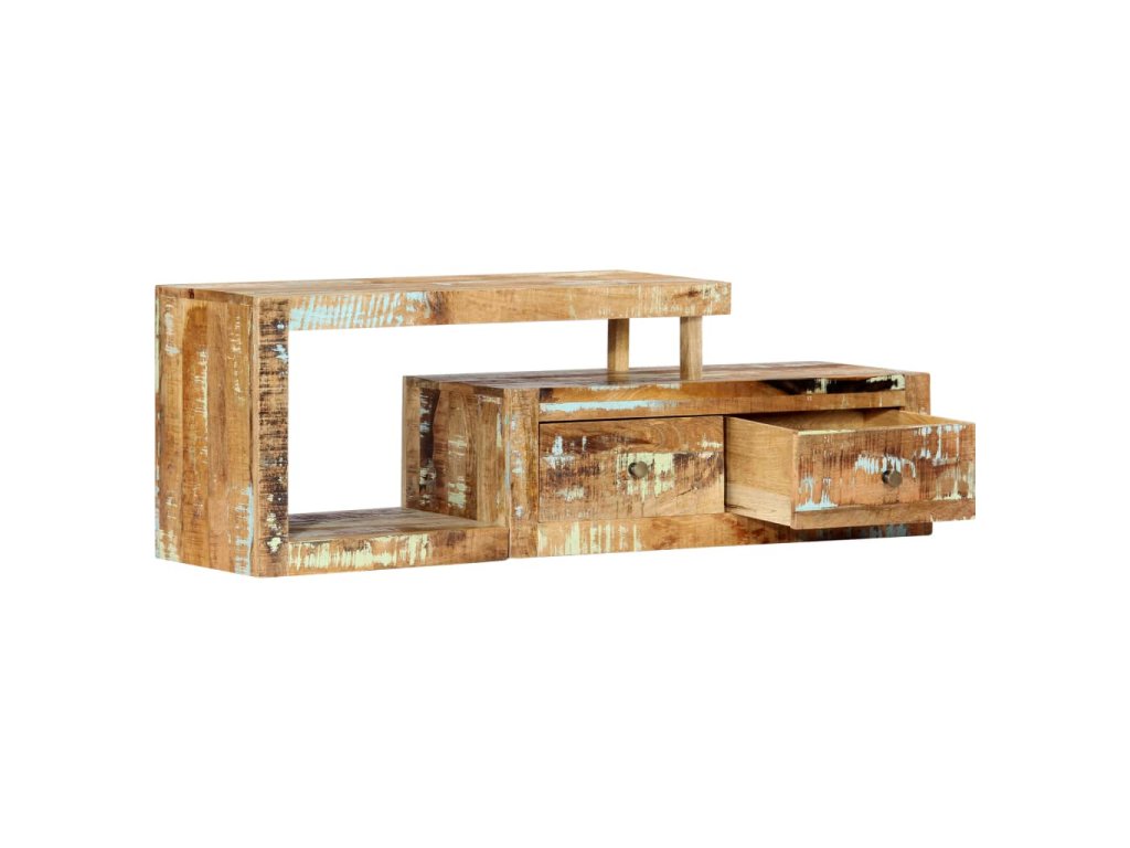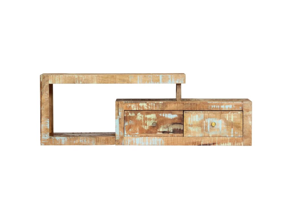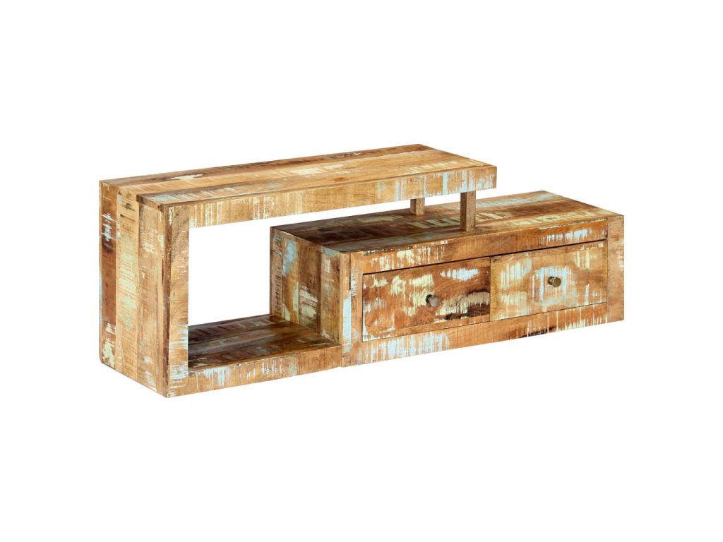 Skrinka na Hi-Fi vežu je vyrobená z recyklovaného masívu, ktorý pochádza z trámov, podláh a nosníkov zo starých stavieb. Pozostáva z rôznych typov dreva, ako napríklad borovicového, tíkového, bukového, dubového, cédrového, mangového či akáciového dreva. Recyklované drevo sa preto vyznačuje vlastnosťami týchto typov dreva. Recyklované drevo je staré, zvetrané a usušené, a preto sa nezmršťuje ani neohýba. Vďaka vynikajúcemu remeselnému opracovaniu a krásnej textúre dreva je každý kus nábytku výnimočný a trochu odlišný od ostatných. TV skrinka s 2 zásuvkami a 1 priečinkom poskytuje množstvo úložného priestoru na multimediálne zariadenia, knihy či rôzne iné predmety. Skrinka na Hi-Fi vežu je už zostavená, nie je potrebné ju montovať.