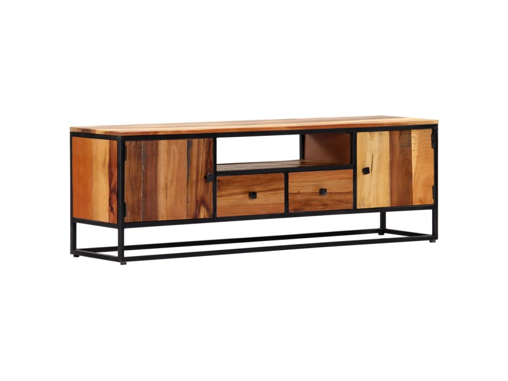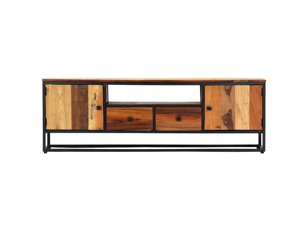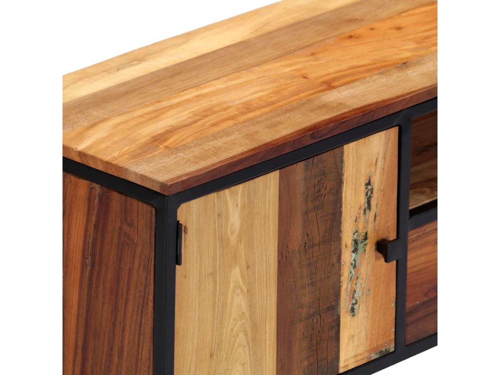 Skrinka na HiFi vežu je vyrobená z mangového a recyklovaného masívu, ktorý pochádza z trámov, podláh a nosníkov zo starých zbúraných stavieb a pozostáva z rôznych typov dreva, ako napríklad borovicového, tíkového, bukového, dubového, cédrového, mangového či akáciového dreva. Recyklované drevo sa preto vyznačuje vlastnosťami týchto typov dreva. Recyklované drevo je staré, zvetrané a usušené, a preto sa nezmršťuje ani neohýba. Každý krok výrobného procesu sa vykonáva s najväčšou starostlivosťou, či už je to leštenie alebo lakovanie. Vďaka vynikajúcemu remeselnému opracovaniu a krásnej textúre dreva je každý kus nábytku výnimočný a trochu odlišný od ostatných. Skrinka na plazmovú televíziu navyše obsahuje 2 dvierka, 2 zásuvky a 1 priečinok, ktoré poskytujú ideálne miesto na odkladanie menších predmetov, aby ste ich mali vždy poruke. Oceľový rám s práškovou povrchovou úpravou dodáva skrinke potrebnú pevnosť a stabilitu. TV skrinka sa jednoducho montuje.