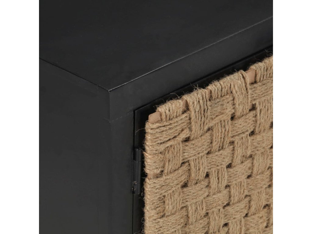 - Materiál: Masívne mangovníkové drevo s čiernou povrchovou úpravou, železo s čiernou práškovanou povrchovou úpravou, juta