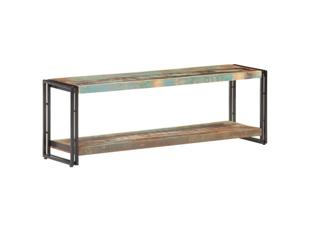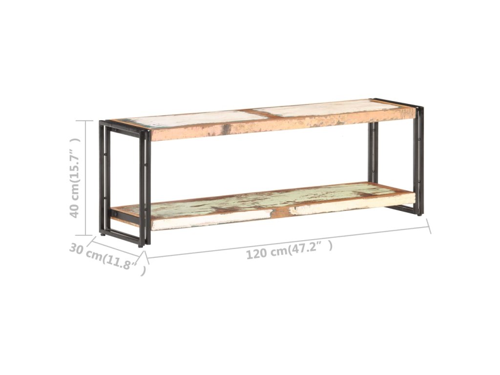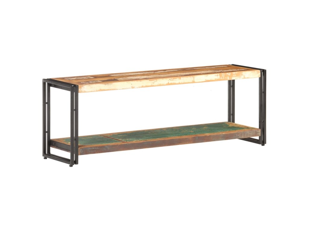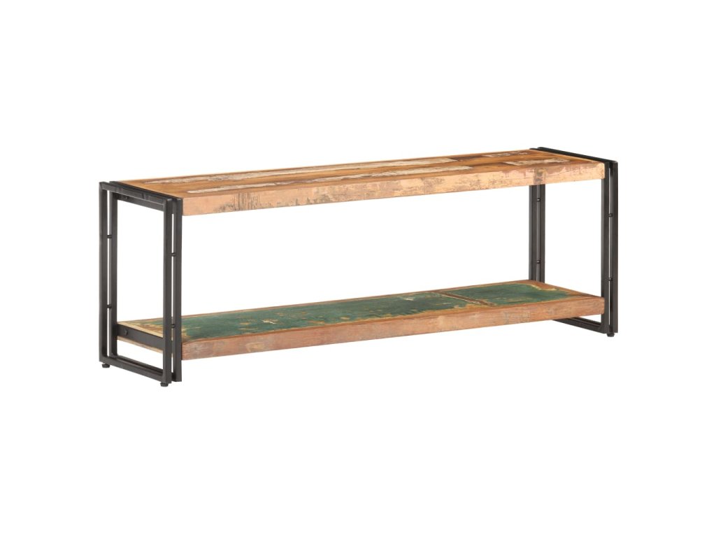 TV skrinka je vyrobená z masívneho recyklovaného dreva, ktoré pochádza z trámov, podláh a nosníkov starých zbúraných stavieb. Okrem toho môže pozostávať z rôznych druhov dreva, ako je teakové drevo, tvrdé drevo, tropické drevo, mangovníkové drevo atď. To znamená, že recyklované drevo si zachováva vlastnosti týchto rôznych druhov drevín. Recyklované drevo už je staré, zvetrané a vysušené. Preto sa nezmršťuje ani neohýba. Pevná vrchná doska sa dá použiť na uloženie dekoratívnych predmetov. Polica tiež poskytuje dostatok priestoru na uloženie vašich multimediálnych zariadení, kníh a rôznych ďalších vecí.