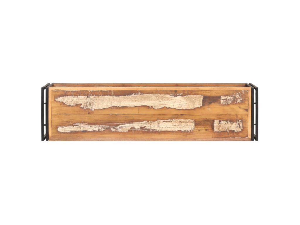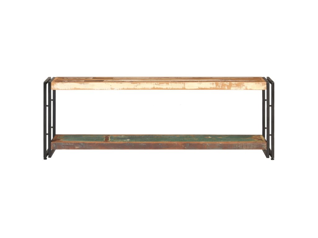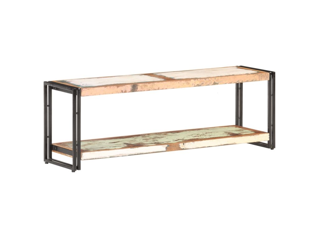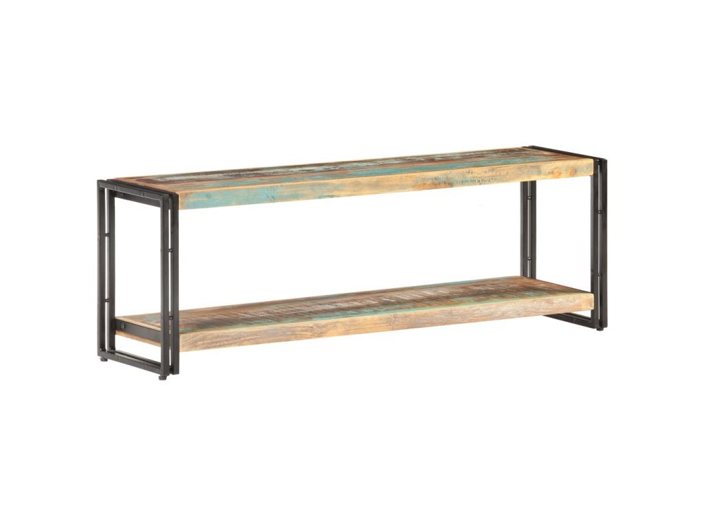 TV skrinka je vyrobená z masívneho recyklovaného dreva, ktoré pochádza z trámov, podláh a nosníkov starých zbúraných stavieb. Okrem toho môže pozostávať z rôznych druhov dreva, ako je teakové drevo, tvrdé drevo, tropické drevo, mangovníkové drevo atď. To znamená, že recyklované drevo si zachováva vlastnosti týchto rôznych druhov drevín. Recyklované drevo už je staré, zvetrané a vysušené. Preto sa nezmršťuje ani neohýba. Pevná vrchná doska sa dá použiť na uloženie dekoratívnych predmetov. Polica tiež poskytuje dostatok priestoru na uloženie vašich multimediálnych zariadení, kníh a rôznych ďalších vecí.