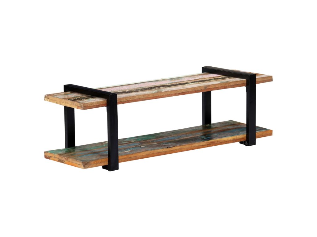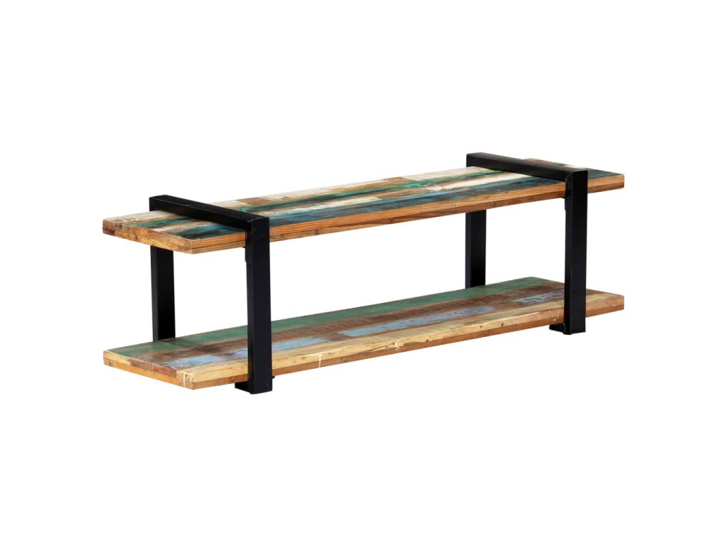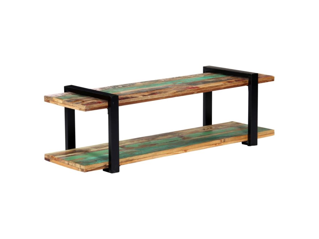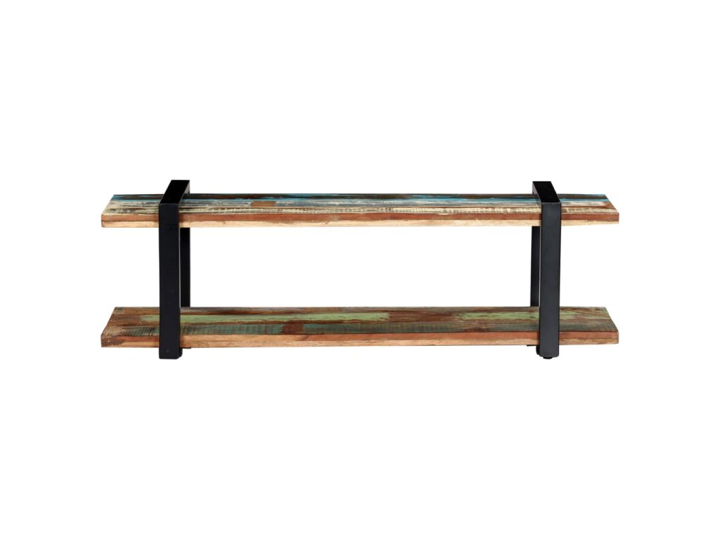 TV skrinka je vyrobená z recyklovaného masívu, ktorý sa vyznačuje vlastnosťami rôznych druhov dreva, ako napríklad tíkového, mangového či akáciového dreva a podobne. Recyklované drevo je staré, zvetrané a usušené, a preto sa nezmršťuje ani neohýba. Každý krok výrobného procesu sa vykonáva s maximálnou starostlivosťou, či už je to leštenie, natieranie alebo lakovanie. Vďaka remeselnému opracovaniu a krásnej textúre dreva je každý kus nábytku jedinečný a trochu odlišný od ostatných. Železné nohy s práškovou povrchovou úpravou prinášajú potrebnú stabilitu. Polička v spodnej časti poslúži ako ideálne miesto na DVD prehrávač, herné konzoly, streamovacie zariadenia či mediálne nosiče.