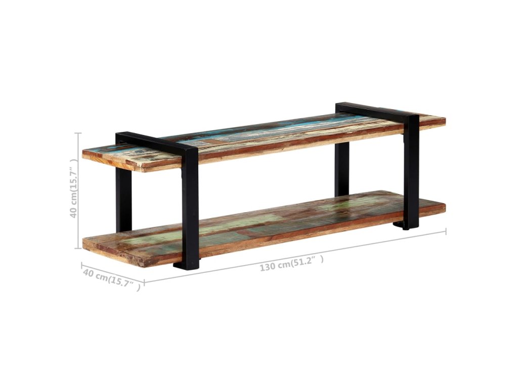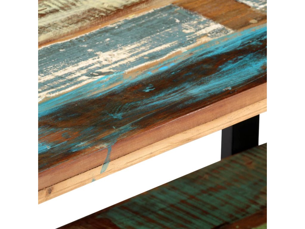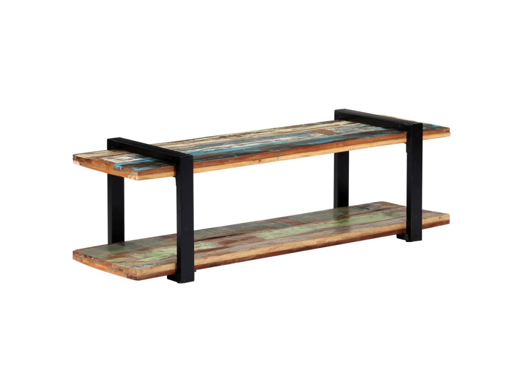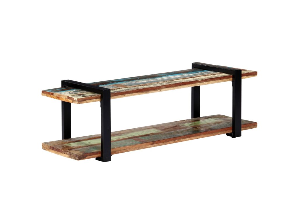 TV skrinka je vyrobená z recyklovaného masívu, ktorý sa vyznačuje vlastnosťami rôznych druhov dreva, ako napríklad tíkového, mangového či akáciového dreva a podobne. Recyklované drevo je staré, zvetrané a usušené, a preto sa nezmršťuje ani neohýba. Každý krok výrobného procesu sa vykonáva s maximálnou starostlivosťou, či už je to leštenie, natieranie alebo lakovanie. Vďaka remeselnému opracovaniu a krásnej textúre dreva je každý kus nábytku jedinečný a trochu odlišný od ostatných. Železné nohy s práškovou povrchovou úpravou prinášajú potrebnú stabilitu. Polička v spodnej časti poslúži ako ideálne miesto na DVD prehrávač, herné konzoly, streamovacie zariadenia či mediálne nosiče.