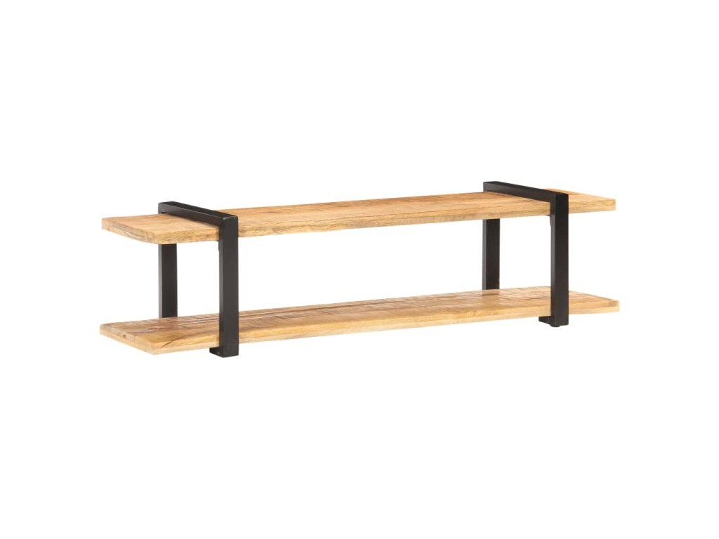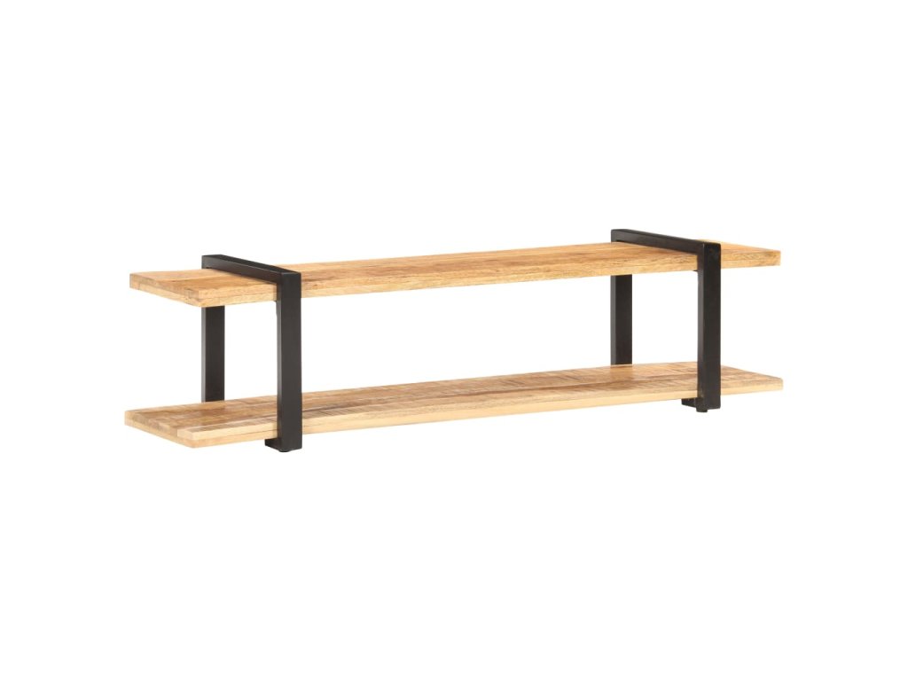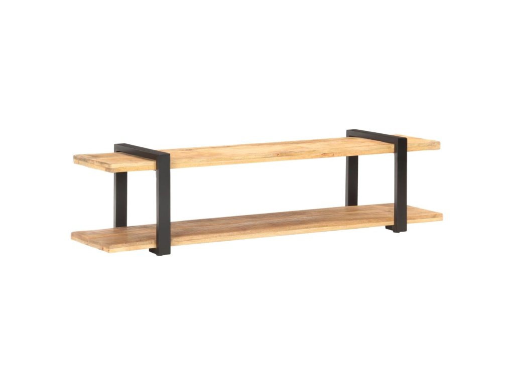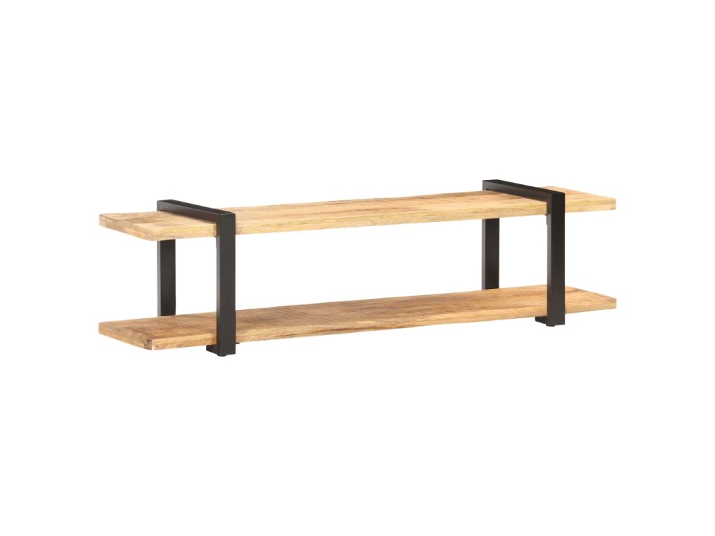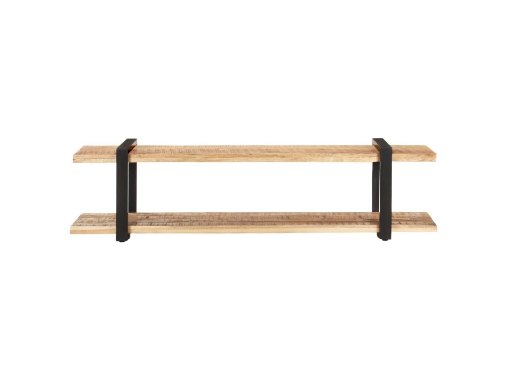 TV stolík je vyrobený zo surového mangového dreva. Mangový masív je drevo tropického listnatého stromu, ktoré je dostatočne pevné na to, aby unieslo aj značnú váhu, no zároveň odoláva každodennému opotrebovaniu. Vďaka vynikajúcemu remeselnému opracovaniu a krásnej textúre dreva je každý kus nábytku trochu odlišný od ostatných. Železné nohy s práškovou povrchovou úpravou prinášajú potrebnú stabilitu. Polička v spodnej časti poslúži ako ideálne miesto na DVD prehrávač, herné konzoly, streamovacie zariadenia či mediálne nosiče.
