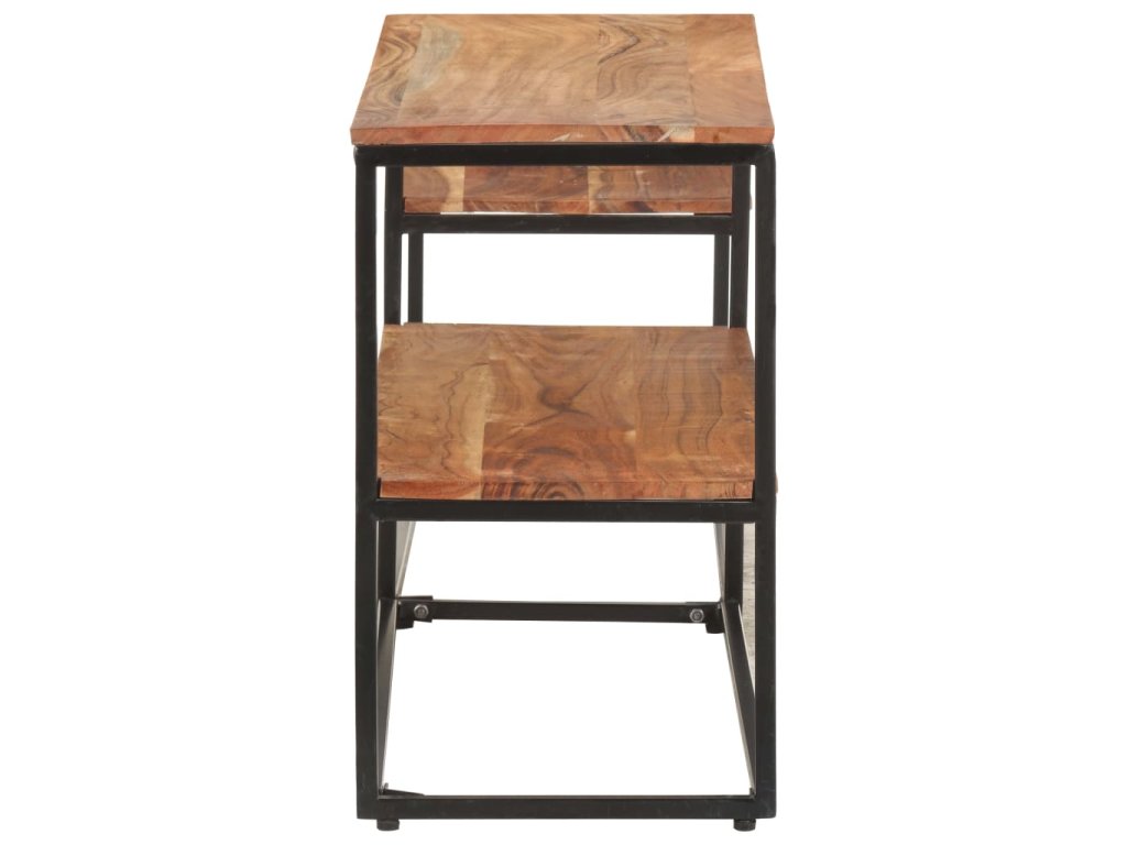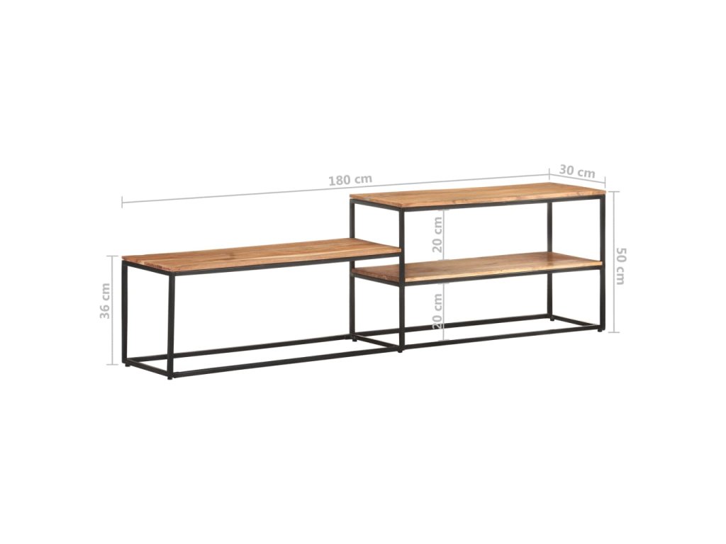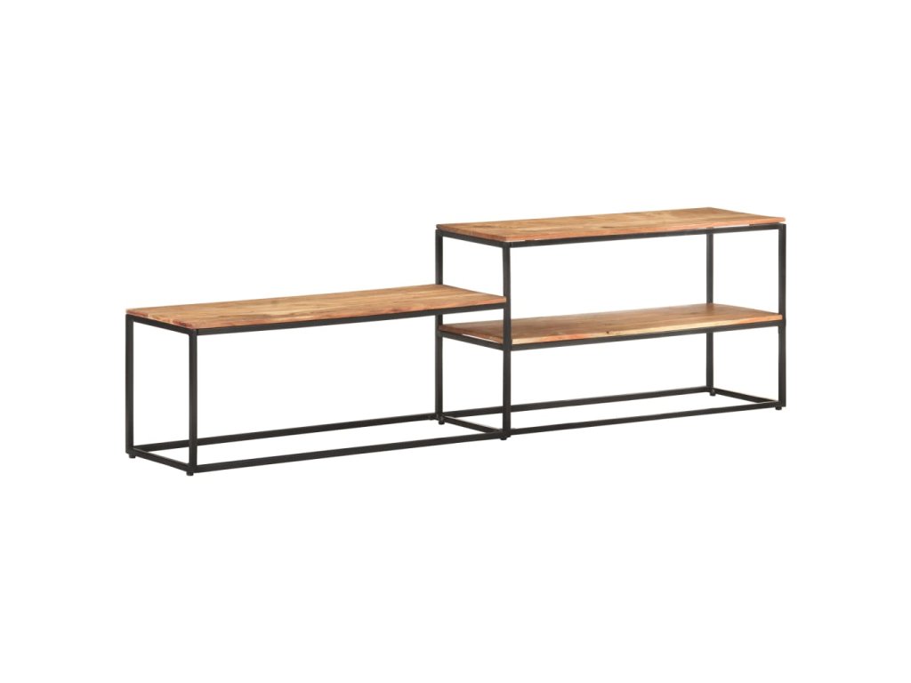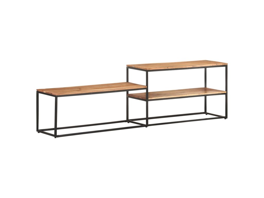 TV skrinka je vyrobená z masívneho akáciového dreva, tvrdého dreva s bohatou štruktúrou, a preto je stabilná a odolná. Železný rám jej dodáva stabilitu. Polica tiež poskytuje dostatok priestoru na uloženie vašich multimediálnych spotrebičov, kníh a rôznych ďalších vecí.