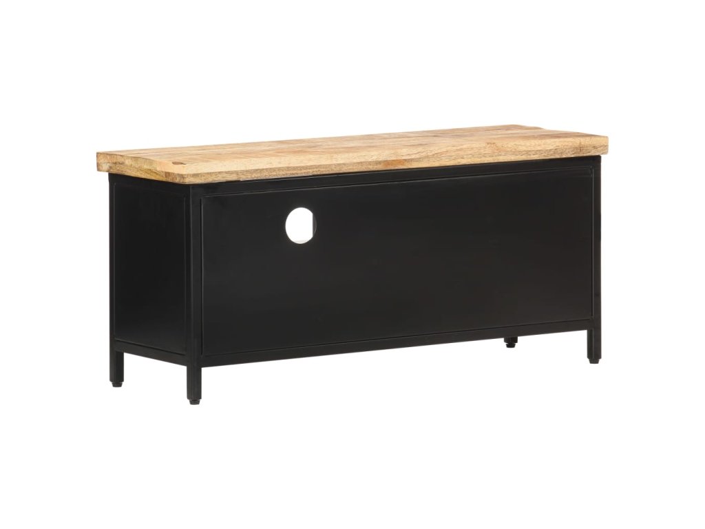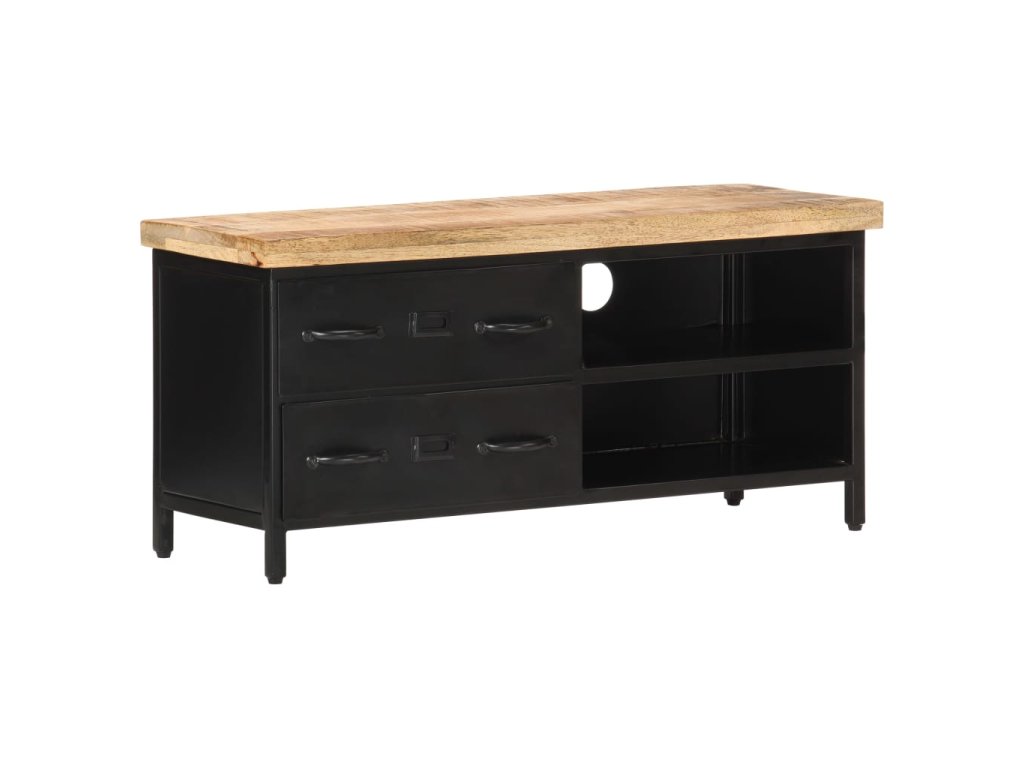 TV skrinka je vyrobená z masívneho surového mangovníkového dreva, tropického tvrdého dreva, ktoré unesie aj vyššiu hmotnosť. Je odolná voči opotrebovaniu, pevná a trvácna. Železná základňa s čiernou práškovanou povrchovou úpravou kombinovaná s oceľou poskytuje tejto komode mimoriadnu stabilitu. Vďaka remeselnému spracovaniu a krásnej drevenej štruktúre je každý kus nábytku jedinečný a mierne sa líši od iných kusov. Táto bočná skrinka má aj 2 zásuvky a 2 priečinky, ktoré poskytujú dostatok úložného priestoru na usporiadanie vašich základných vecí, ktoré chcete mať na dosah ruky.